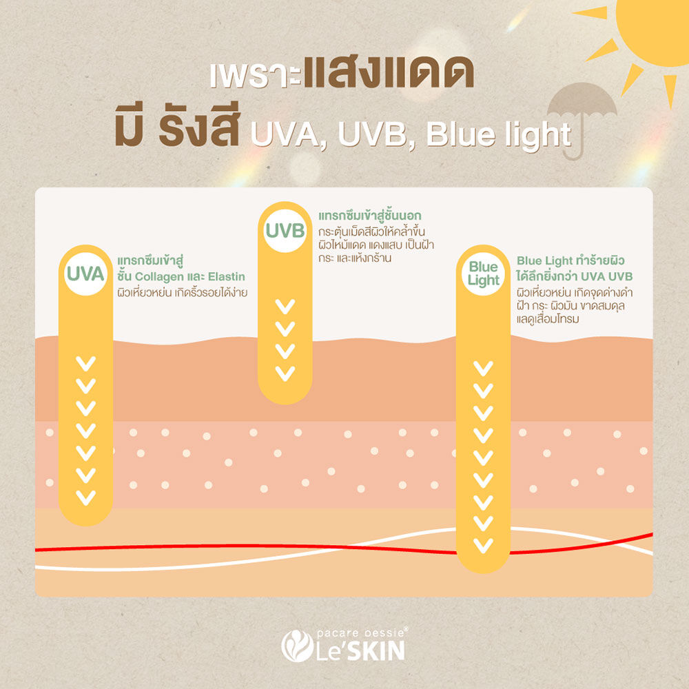 • ป้องกันผิวจากรังสี UVA, UVB, Blue Light