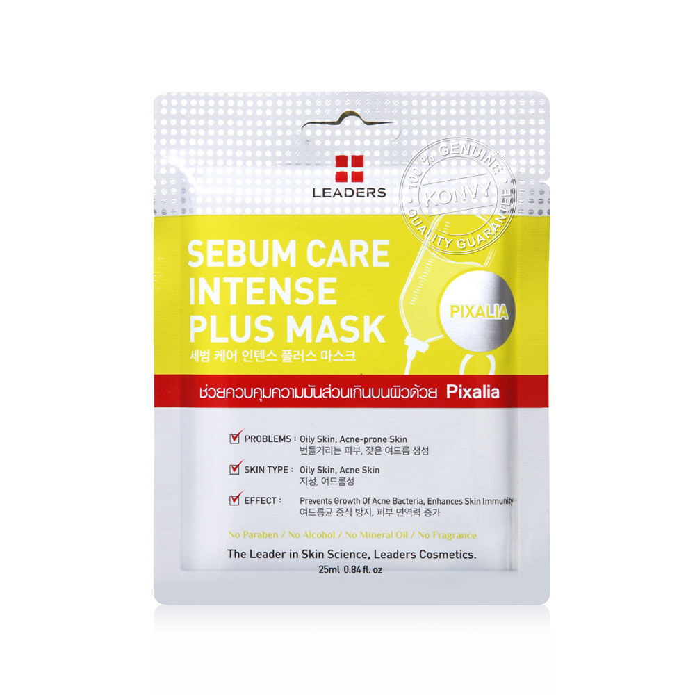 Leaders Sebum Care Intense Plus Mask [25ml x 5pcs] แผ่นมาสก์หน้า เพื่อช่วยควบคุมความมันส่วนเกินบนผิว สูตรเอสเซนส์ซึมเร็ว พร้อมแผ่นมาสก์บางแนบสนิท สบายผิว อุดมด้วยสารสกัดจาก Pixalia ช่วยควบคุมความมันส่วนเกิน และลดการสะสมของแบคทีเรีย Portulaca Oleracea Extract ช่วยให้อาการระคายเคืองดูลดลง