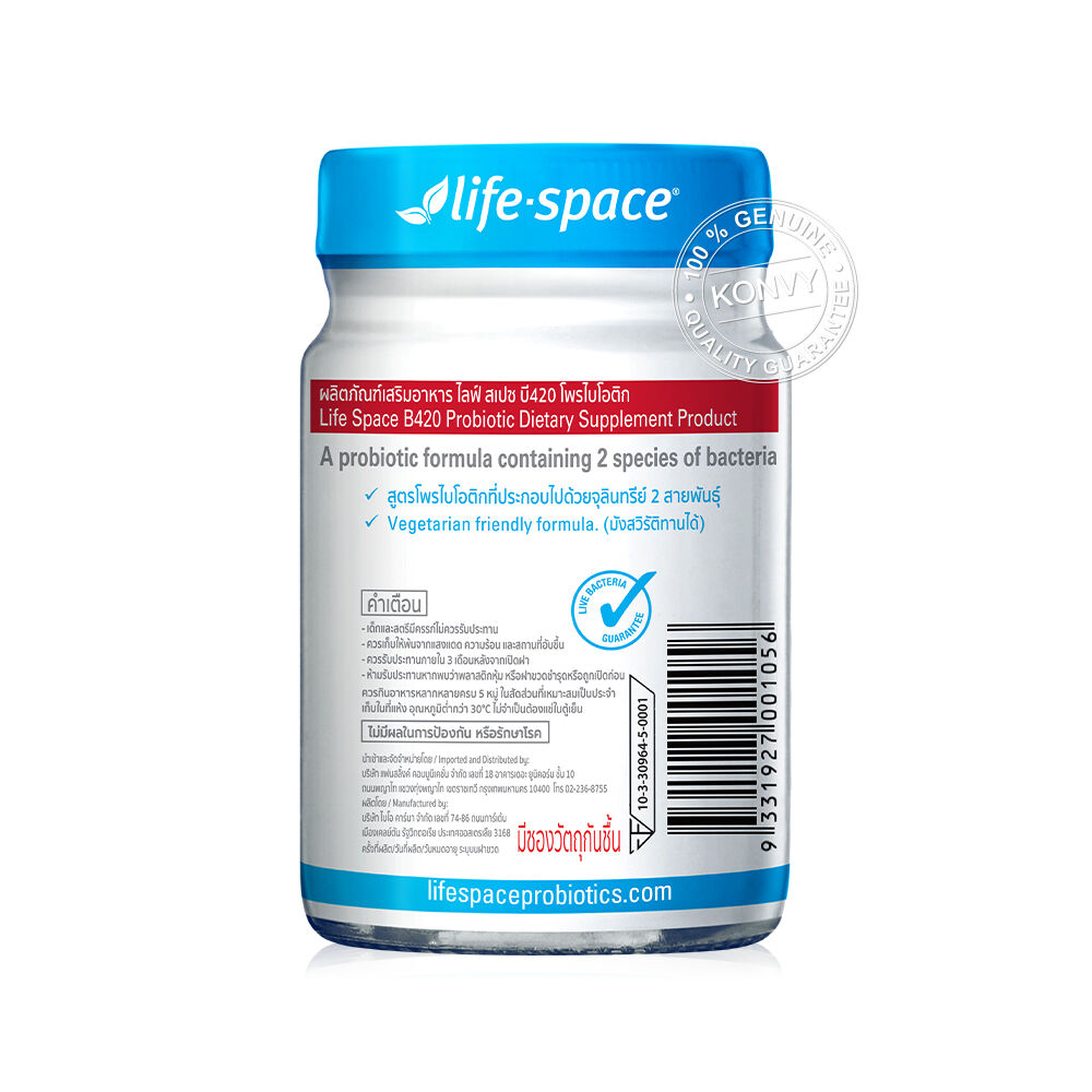 Life Space B420 Probiotic Dietary Supplement Product 30 Capsules ผลิตภัณฑ์เสริมอาหารโพรไบโอติกส์ ที่ประกอบด้วยจุลิทรีย์ 2 สายพันธุ์ Lactobacillus gasseri และ Bifidobacterium animalis ssp. Lactis