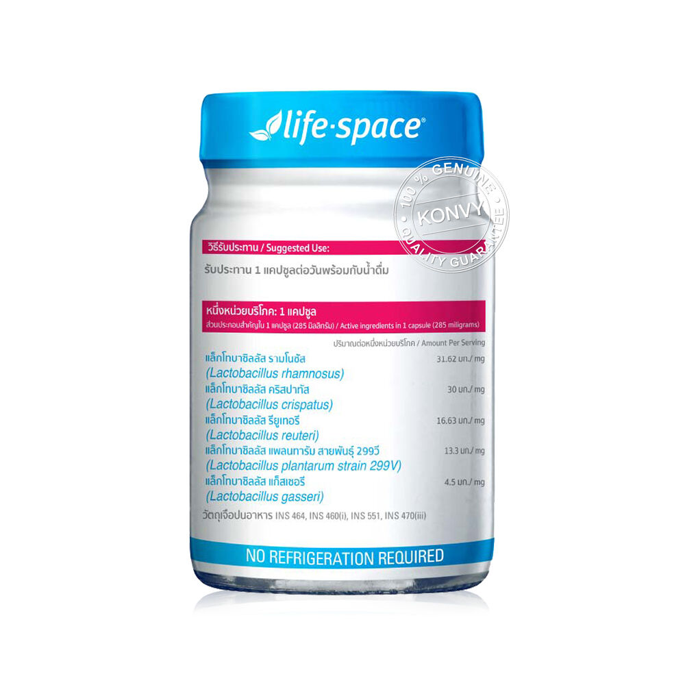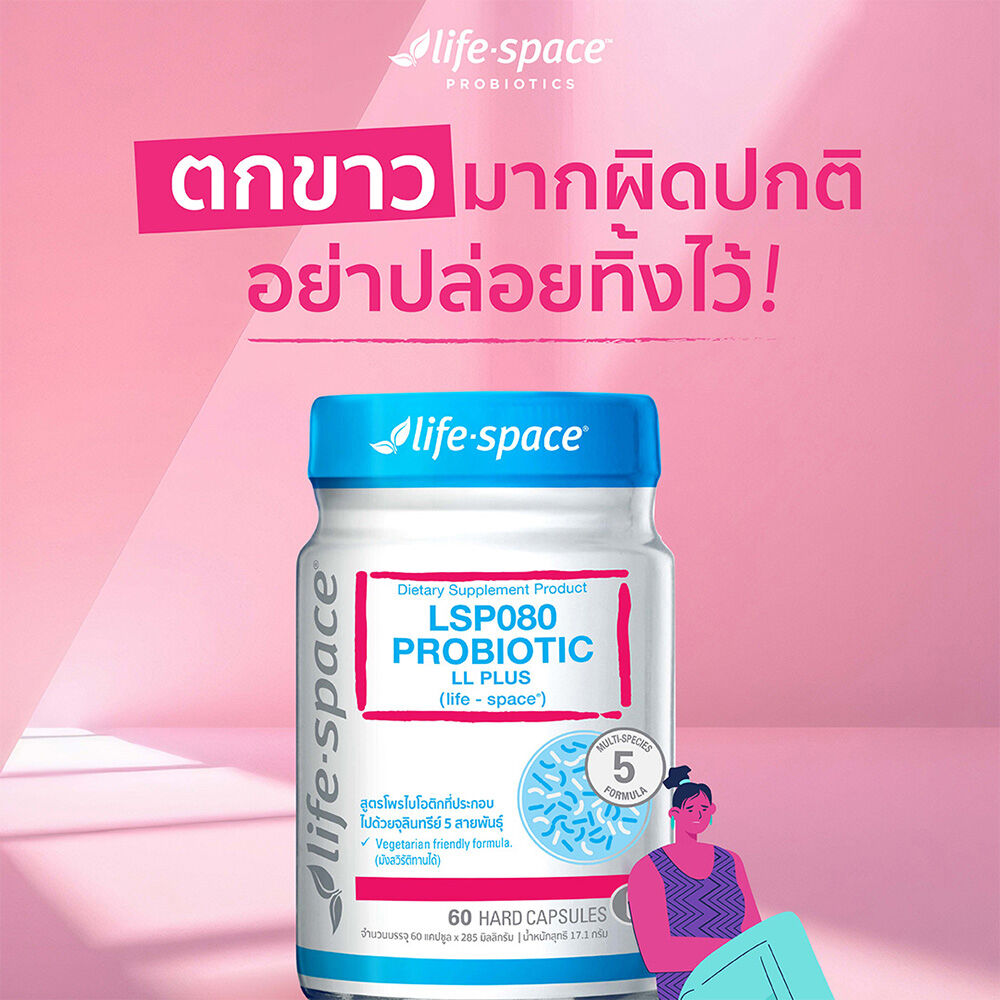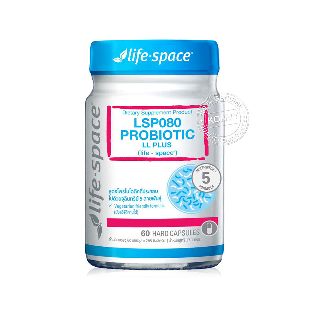 Life Space LSP080 Probiotic LL Plus Dietary Supplement Product 60 Capsules ผลิตภัณฑ์เสริมอาหารโพรไบโอติกส์ สำหรับผู้หญิง ที่ประกอบด้วยจุลิทรีย์ 5 สายพันธุ์ Lactobacillus rhamnosus, Lactobacillus crispatus, Lactobacillus reuteri, Lactobacillus plantarum strain 299V, Lactobacillus gasseri