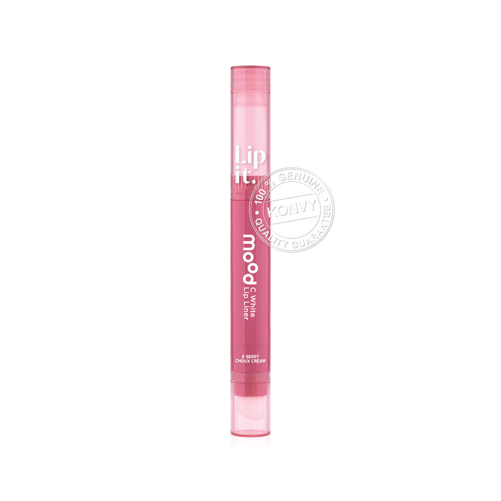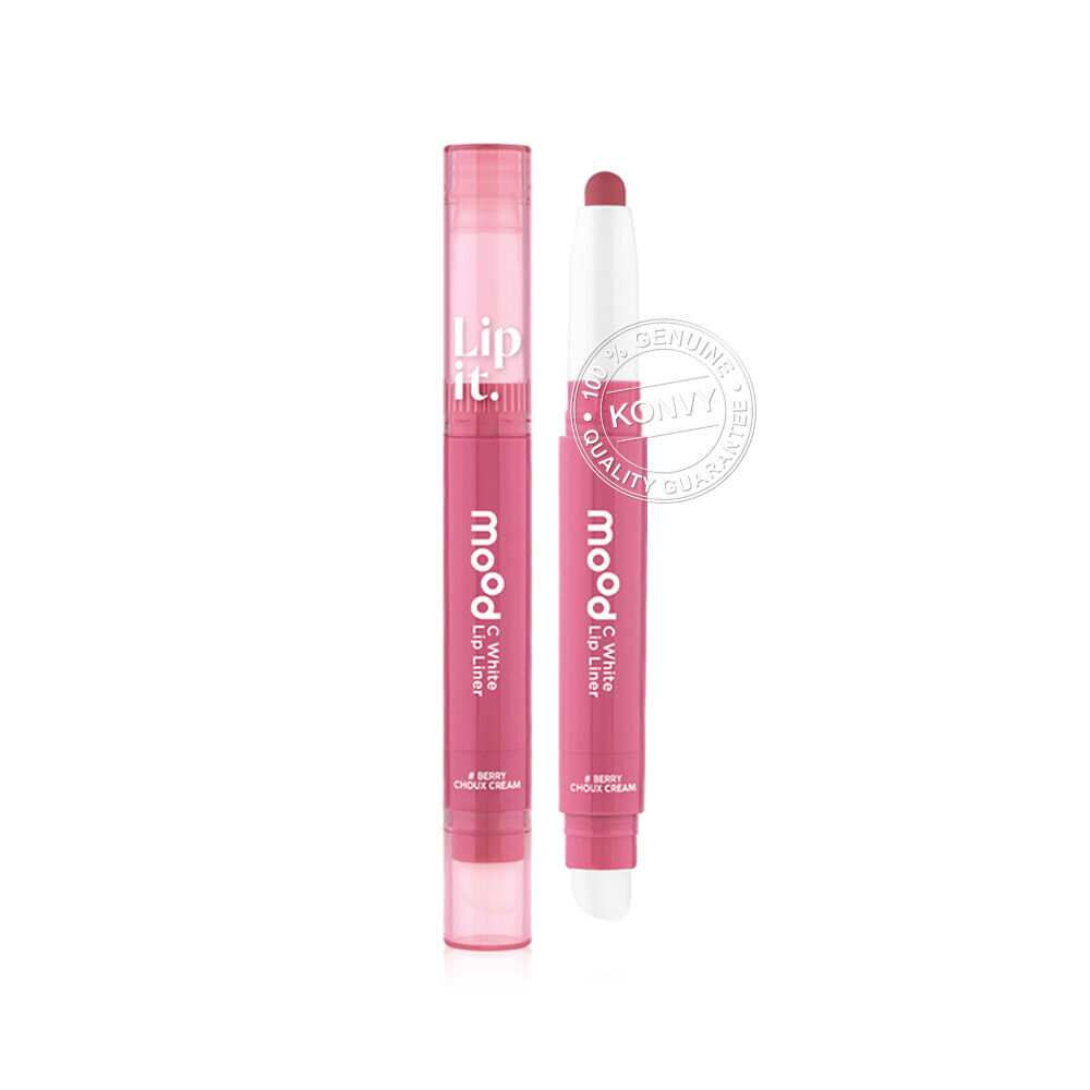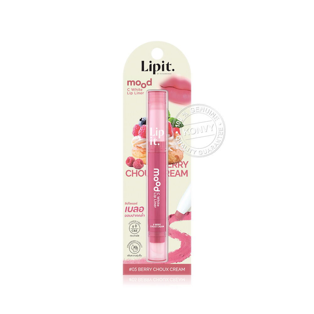 Lip It Mood C White Lip Liner 0.55g #05 Berry Choux Cream ลิปไลเนอร์เนื้อซอฟต์แมท สัมผัสเนียนนุ่ม เขียนง่าย เม็ดสีแน่น ใช้กลบขอบปากคล้ำให้เนียนสนิท หรือสามารถใช้เขียนกรอบเพื่อสร้างมิติให้ขอบปากคมชัด ดูอวบอิ่มขึ้น เผยความสดใสให้ริมฝีปากด้วยวิตามินซี และสารสกัดสตรอว์เบอร์รี่ป่า (Fragaria Vesca Fruit Extract) ที่มีสาร AHA จากธรรมชาติ ช่วยผลัดความหมองคล้ำของริมฝีปากให้กระจ่างใส ผสานพลังวิตามินอี ดูแลริมฝีปากให้เนียนนุ่ม พร้อมล็อกความชุ่มชื้นด้วย Vitaoils จากน้ำมันซีบัคธอร์น (Sea buckthorn Oil) และน้ำมันทามานู (Tamanu Oil) ช่วยปกป้องริมฝีปากจากความแห้งกร้าน ผสานการบำรุงจากสารสกัดวานิลลาแพลนนิโฟเลีย (Vanilla Planifolia Extract) เพิ่มความยืดหยุ่นให้ริมฝีปากกระชับ และสารสกัดจากดอกไฮเดรนเยีย (Hydrangea Serrata Extract) ฟื้นบำรุงริมฝีปากบอบบางให้กลับมาเปล่งประกายสุขภาพดี