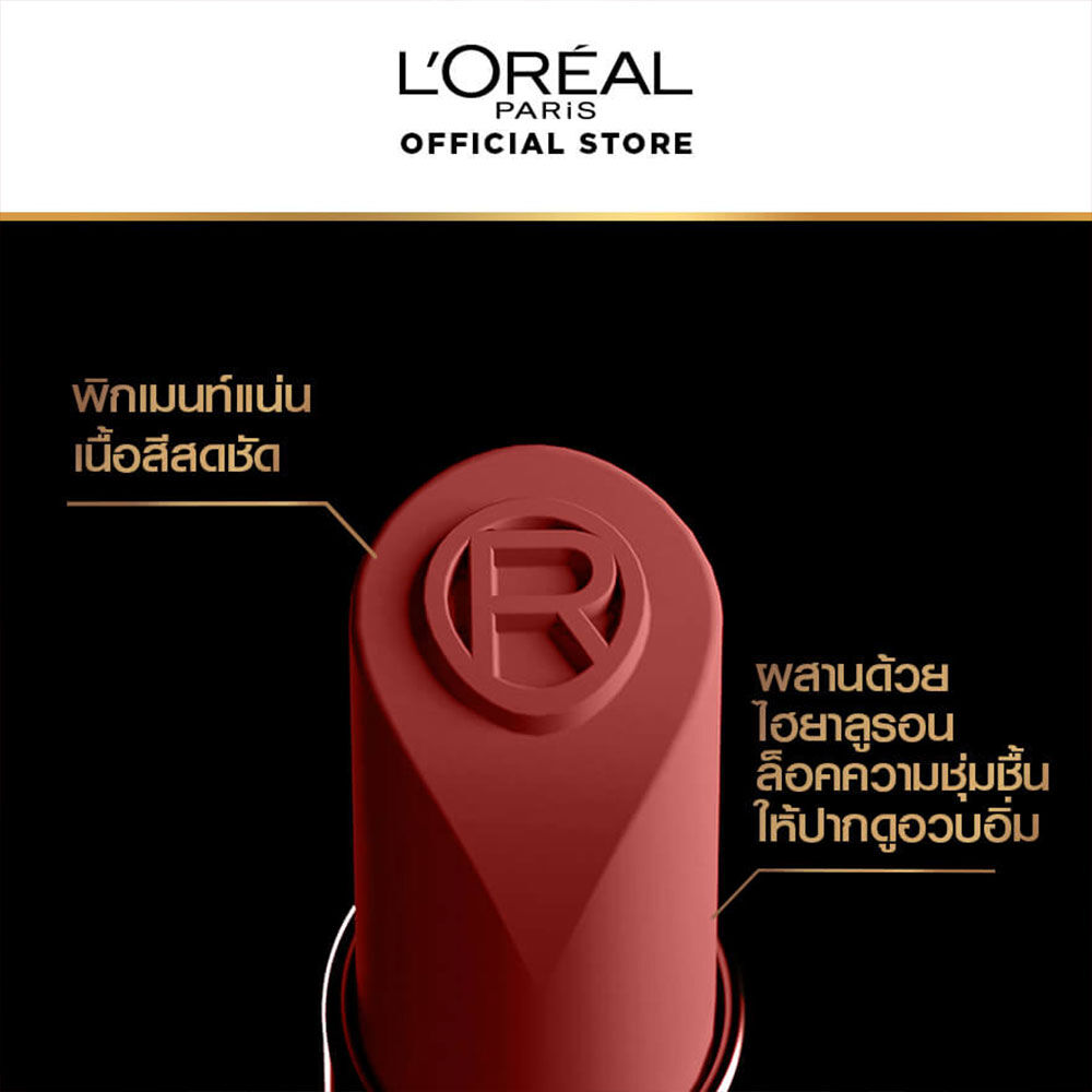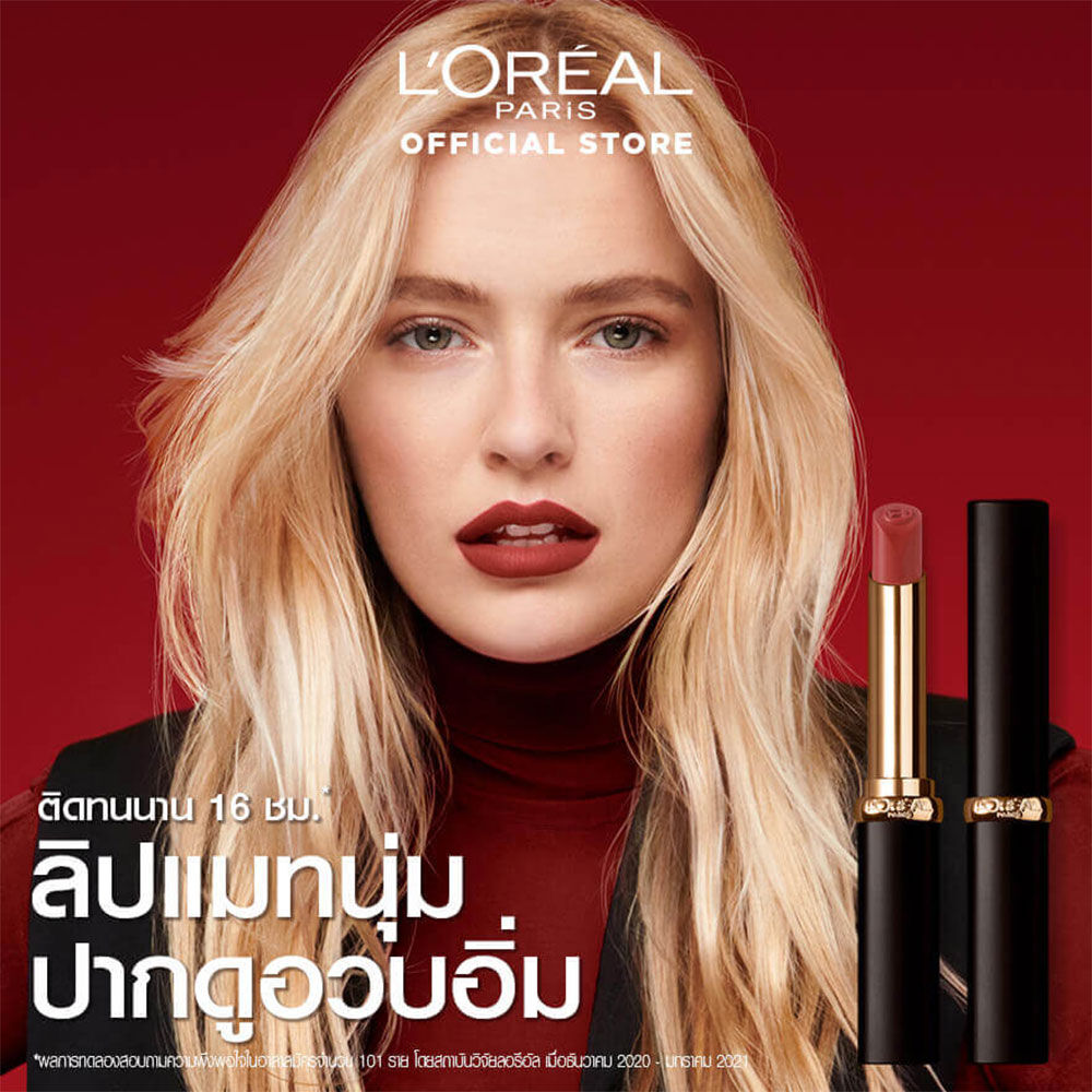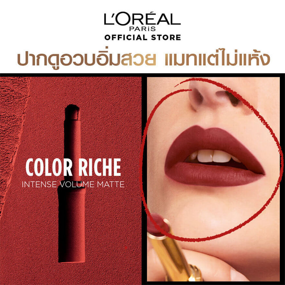 L'Oréal Paris Color Riche Intense Volume Matte 2g #129 ลิปสติกเนื้อแมทเนียนนุ่มที่ติดทนนานถึง 16 ชั่วโมง ผสานพลังไฮยาลูโรนิค แอซิด บำรุงริมฝีปากให้รู้สึกชุ่มชื้นตลอดวัน สัมผัสบางเบา เพิ่มวอลลุ่มให้ริมฝีปากดูอิ่มเอิบ ริมฝีปากไม่แบน ไม่แห้ง มาพร้อมดีไซน์เพรียวบางรูปแบบใหม่ช่วยให้ทาได้ง่ายขึ้น แม่นยำยิ่งขึ้น มีให้เลือก 4 เฉดสีแมท เหมาะกับทุกโทนสีผิว