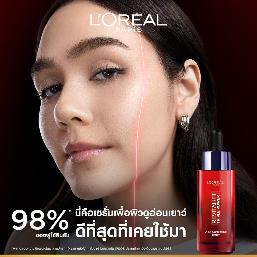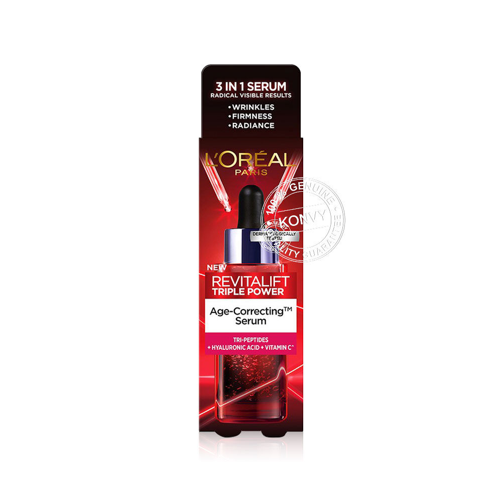 LOreal Paris Revitalift Triple Power Age-Correcting Serum 30ml เซรั่มบำรุงผิว เนื้อบางเบา ซึมซาบเร็ว ไม่เหนียวเหนอะหนะ ช่วยลดเลือนริ้วรอยลึก ผิวดูกระชับอิ่มฟู และลดเลือนจุดด่างดำ เผยผิวเนียนใส