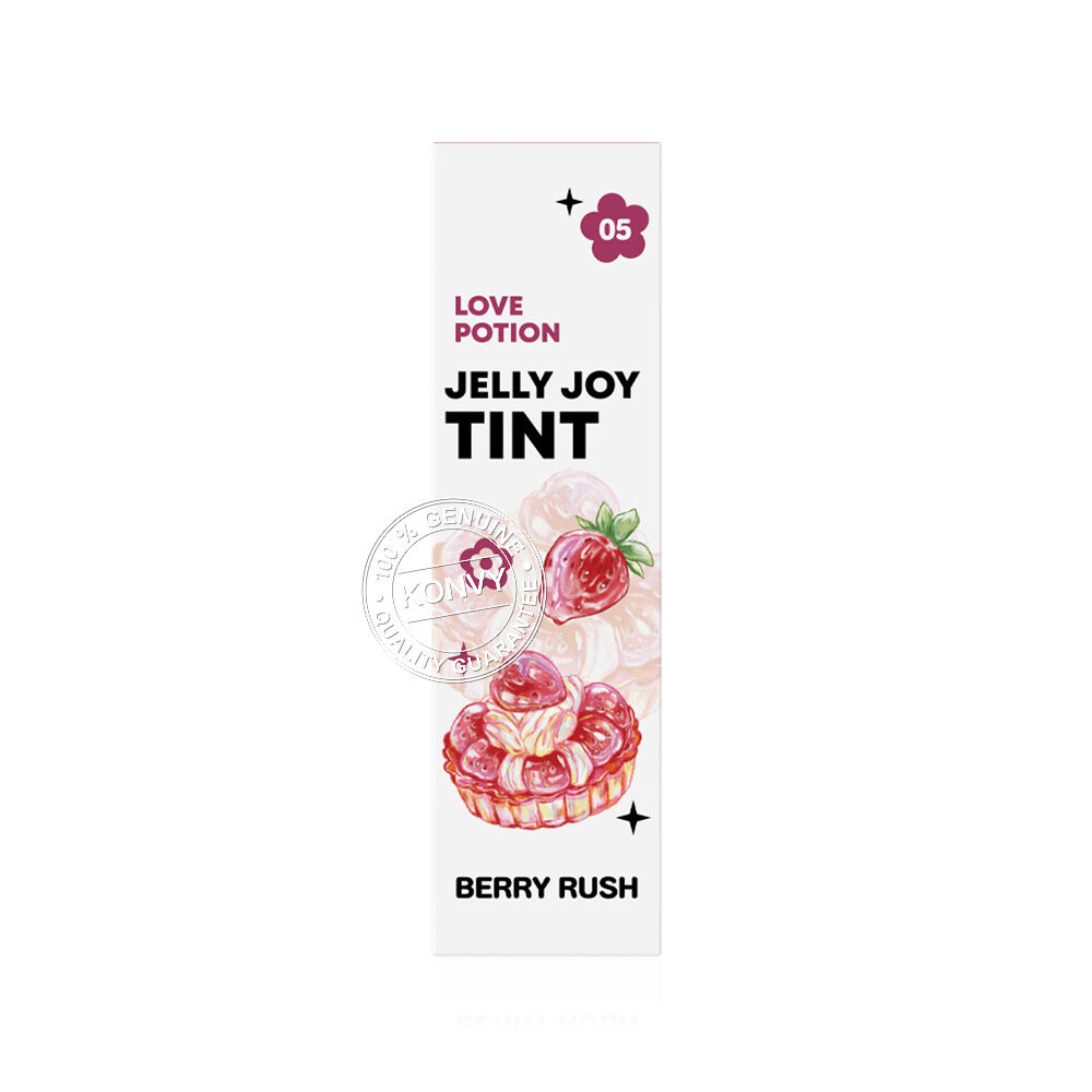 LOVE POTION Jelly Joy Tint 2.5g #05 Berry Rush ลิปทินท์เนื้อเจลลี่นุ่ม สัมผัสบางเบา เม็ดสีชัด ติดทนนาน ทิ้งสเตนสีสวย ไม่เหนียวเหนอะหนะ อุดมด้วยสารบำรุง Ceramide Complex, Vitamin E, Vitamin C และ Pro-Vitamin B5 ช่วยฟื้นบำรุงและเติมความชุ่มชื้นให้ริมฝีปาก พร้อมด้วย Palmitoyl Tripeptide-1, Moisturizer Complex และสารสกัดพืชคืนชีพ (Myramaze Essence) ช่วยลดเลือนริ้วรอยร่องปาก เผยริมฝีปากเนียนนุ่ม ดูอวบอิ่ม น่าสัมผัส