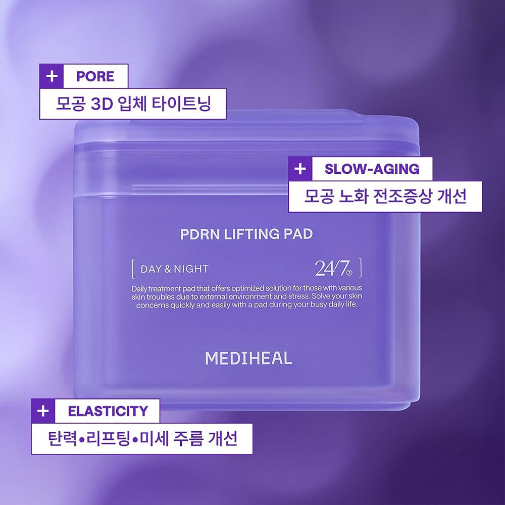 Mediheal PDRN Lifting Pad 170ml โทนเนอร์แพดสูตรเข้มข้น สำหรับดูแลรูขุมขนและผิวหย่อนคล้อย ด้วยแผ่นแพดขนาดใหญ่ที่แนบสนิทกับผิว ช่วยให้ผิวแน่นกระชับ รูขุมขนแลดูเล็กลง พร้อมเติมความชุ่มชื้น ไม่เหนียวเหนอะหนะ อุดมด้วย Rose PDRN จากพืช ซึ่งมีอนุภาคเล็กกว่าสารจากสัตว์ถึง 250 เท่า ซึมเข้าสู่ผิวได้ล้ำลึก ผสานเทคโนโลยี Bio-Enveloped และ Bio-Emulzome ช่วยคงคุณภาพ และเสริมการดูดซึมของสารสำคัญได้อย่างมีประสิทธิภาพ แผ่นบำรุงผิวในรูปแบบ Stretch Cotton Pad ออกแบบมาในทรงสี่เหลี่ยมขนาดใหญ่ช่วยให้แผ่นบำรุงสามารถยืดและแนบสนิทโดยเฉพาะบริเวณแก้มและกรอบหน้า