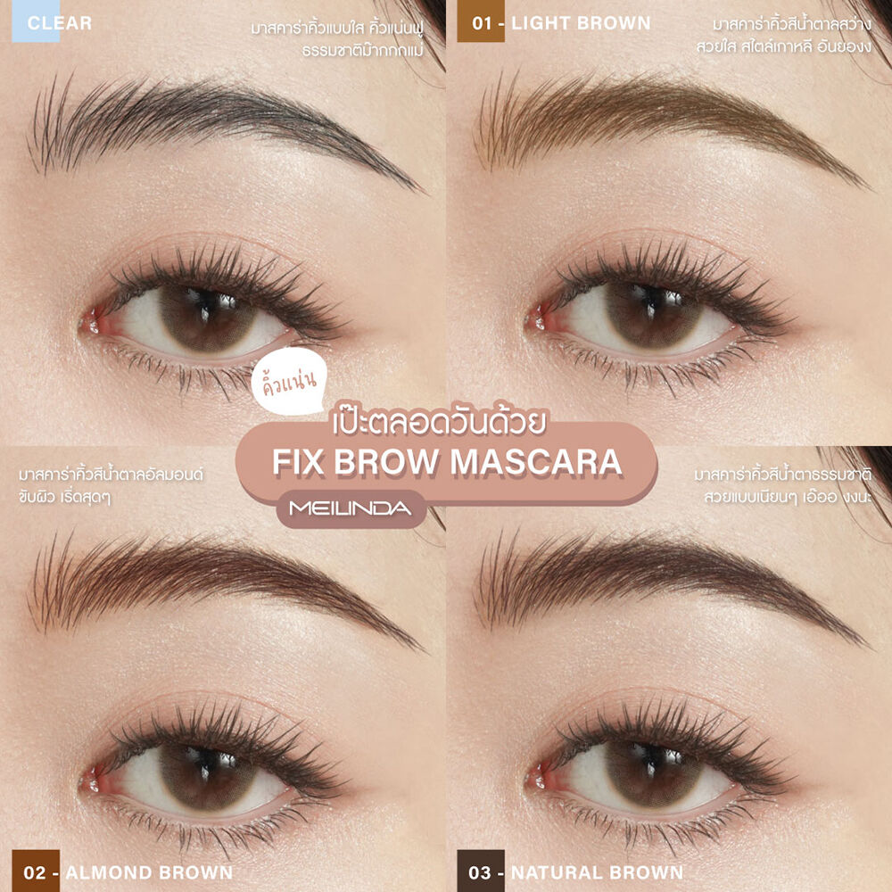 Mei Linda Fix Brow Clear Mascara 6ml มาสคาร่าปัดคิ้วสูตรเนื้อเจลใส ช่วยเชทขนคิ้วให้ตั้งเป็นทรงเรียงตัวสวยอย่างเป็นธรรมชาติ พร้อมคุณสมบัติแห้งไวกันน้ำและติดทนนานตลอดวัน