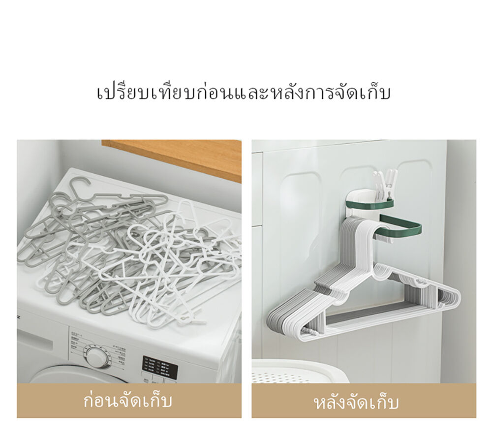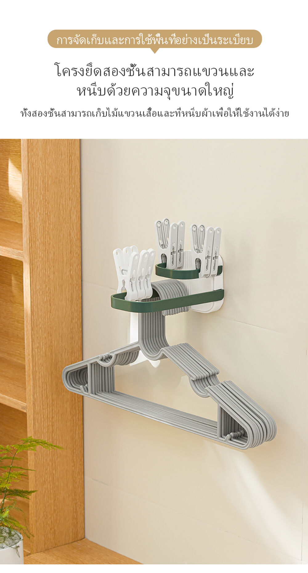 • การจัดเก็บและการใช้พื้นที่อย่างเป็นระเบียบ โครงยึดสองชั้นสามารถแขวนและหนีบด้วยความจุขนาดใหญ่ ทั้งสองชั้นสามารถเก็บไม้แขวนเสื้อและที่หนีบผ้าเพื่อให้ใช้งานได้ง่าย