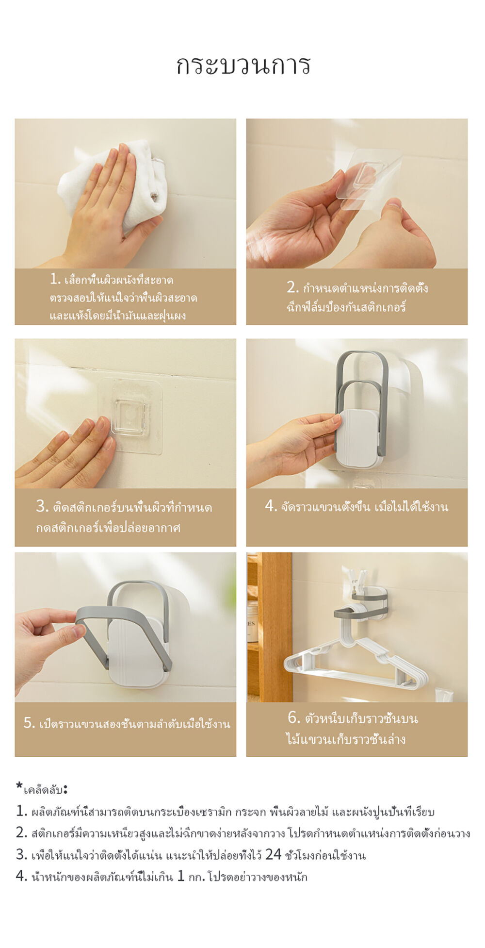 • ตัวหนีบเก็บราวชั้นบน ไม้แขวนเก็บราวชั้นล่าง
