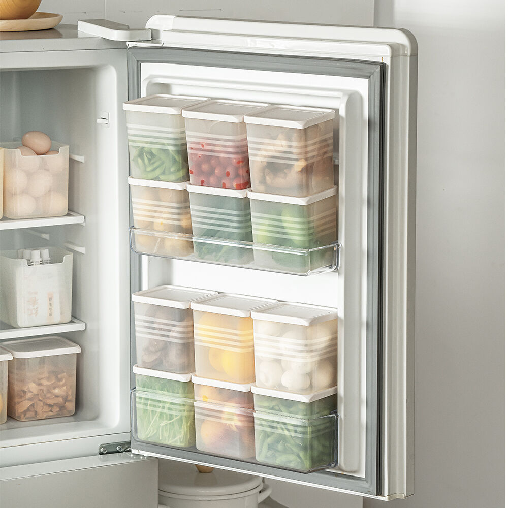 • จัดเรียงและจัดระเบียบให้ประหยัดพื้นที่แนวตั้งของประตูตู้เย็นด้านข้างเป็นระเบียบ