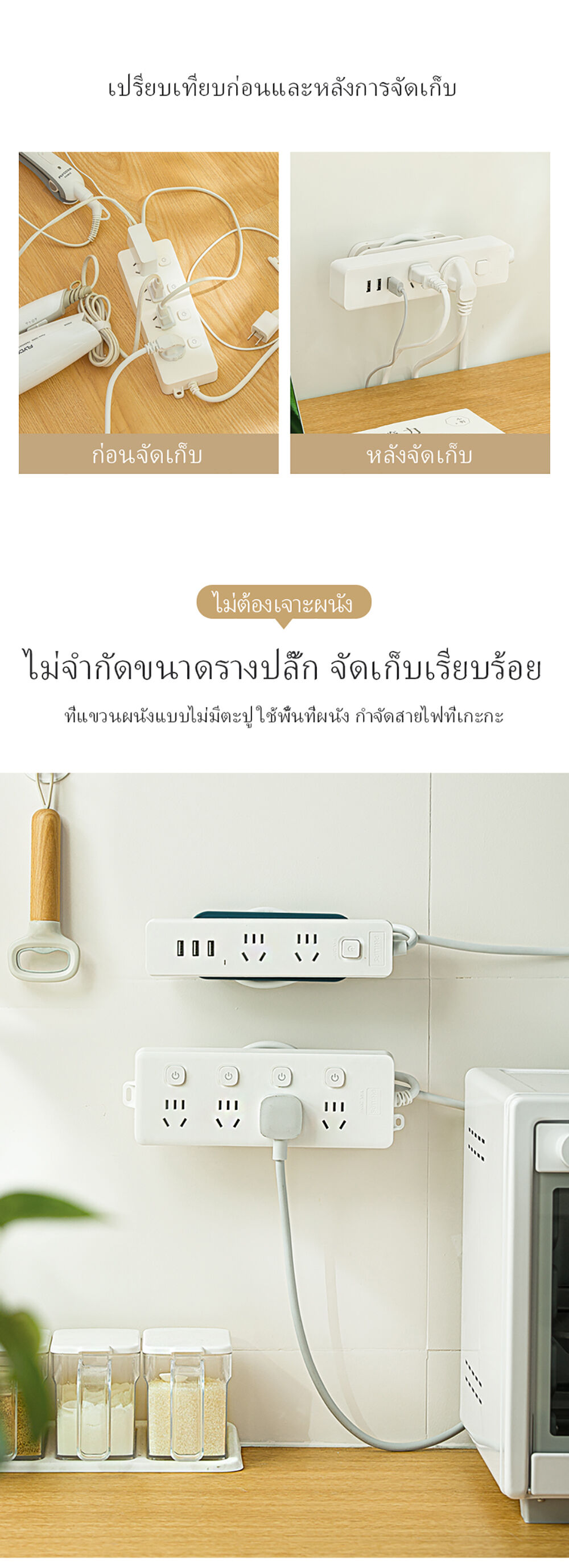 • ที่แขวนผนังแบบไม่ต้องเจาะผนัง ไม่จำกัดขนาดรางปลั๊ก จัดเก็บเรียบร้อยกำจัดสายไฟที่เกะกะ
