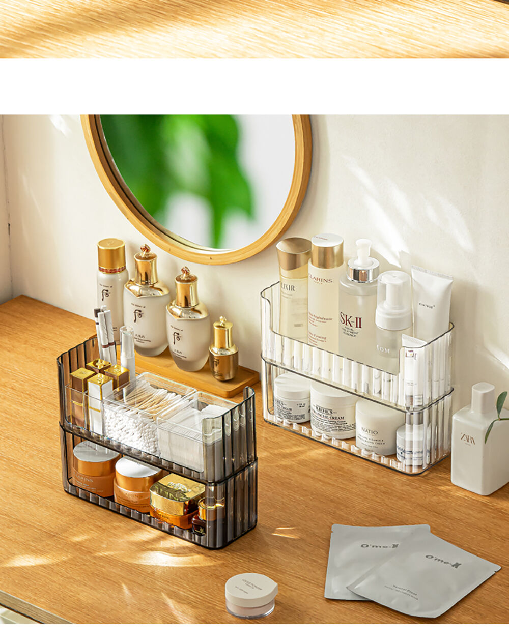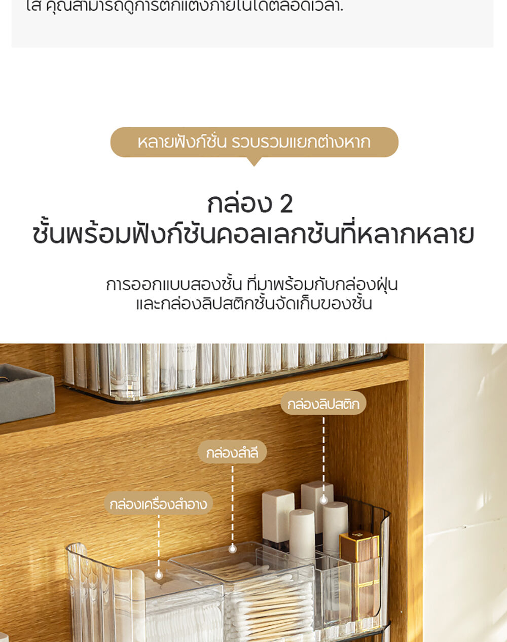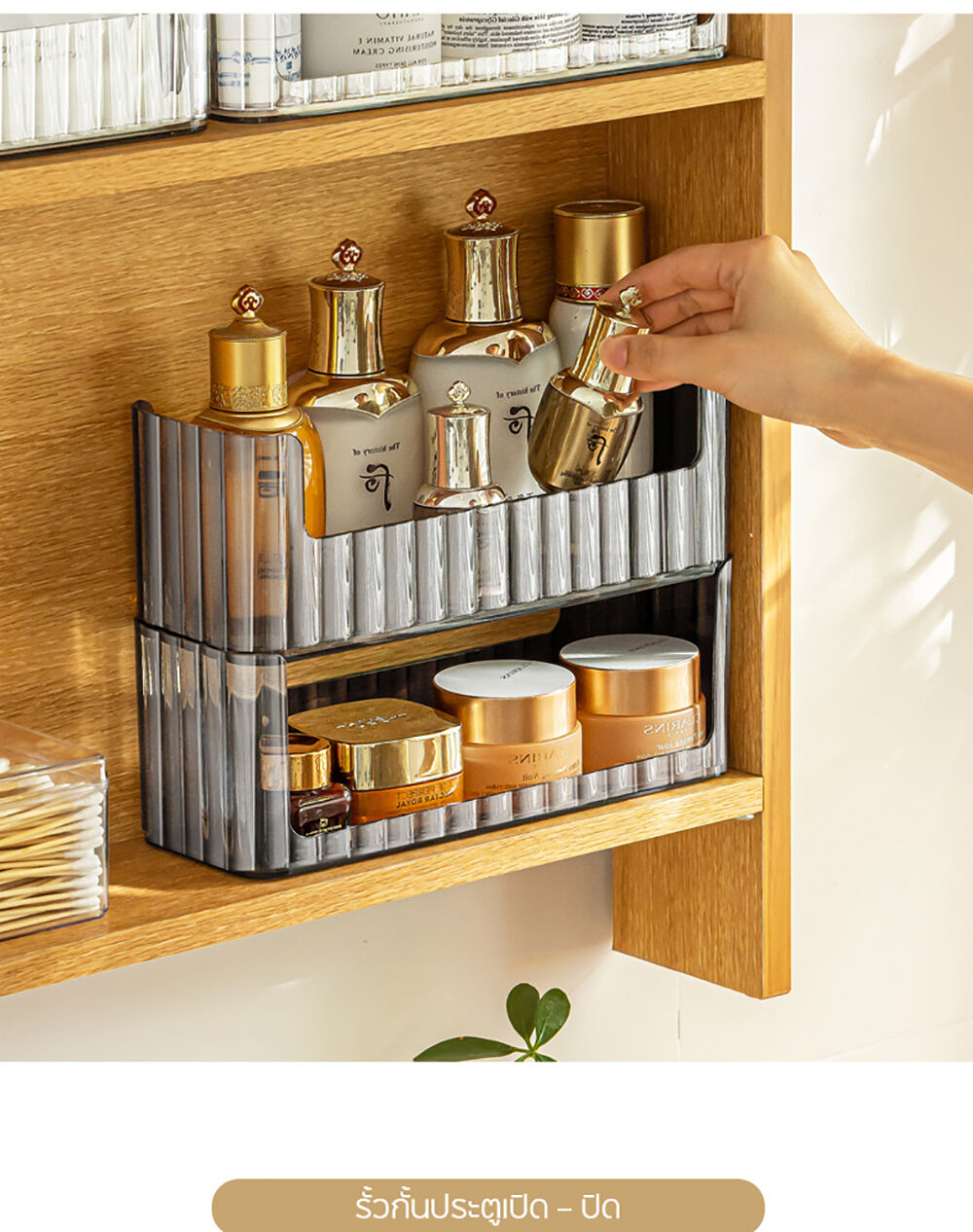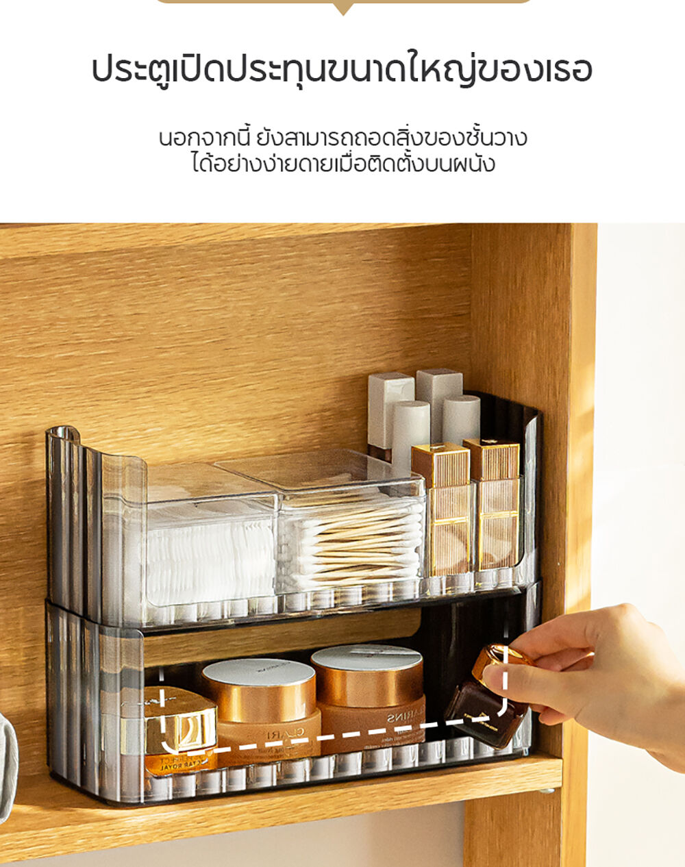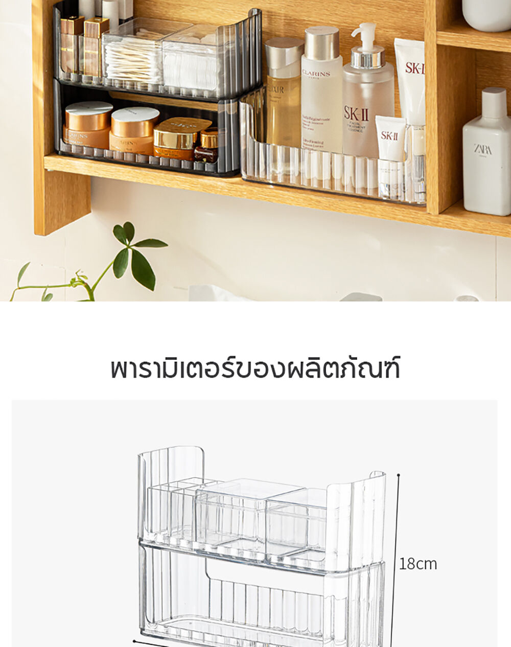 • สามารถวางซ้อนกันได้ เพิ่มพื้นที่จัดเก็บในแนวตั้ง (Stackable System) เหมาะสำหรับจัดเก็บสกินแคร์ เครื่องสำอาง หรือยา