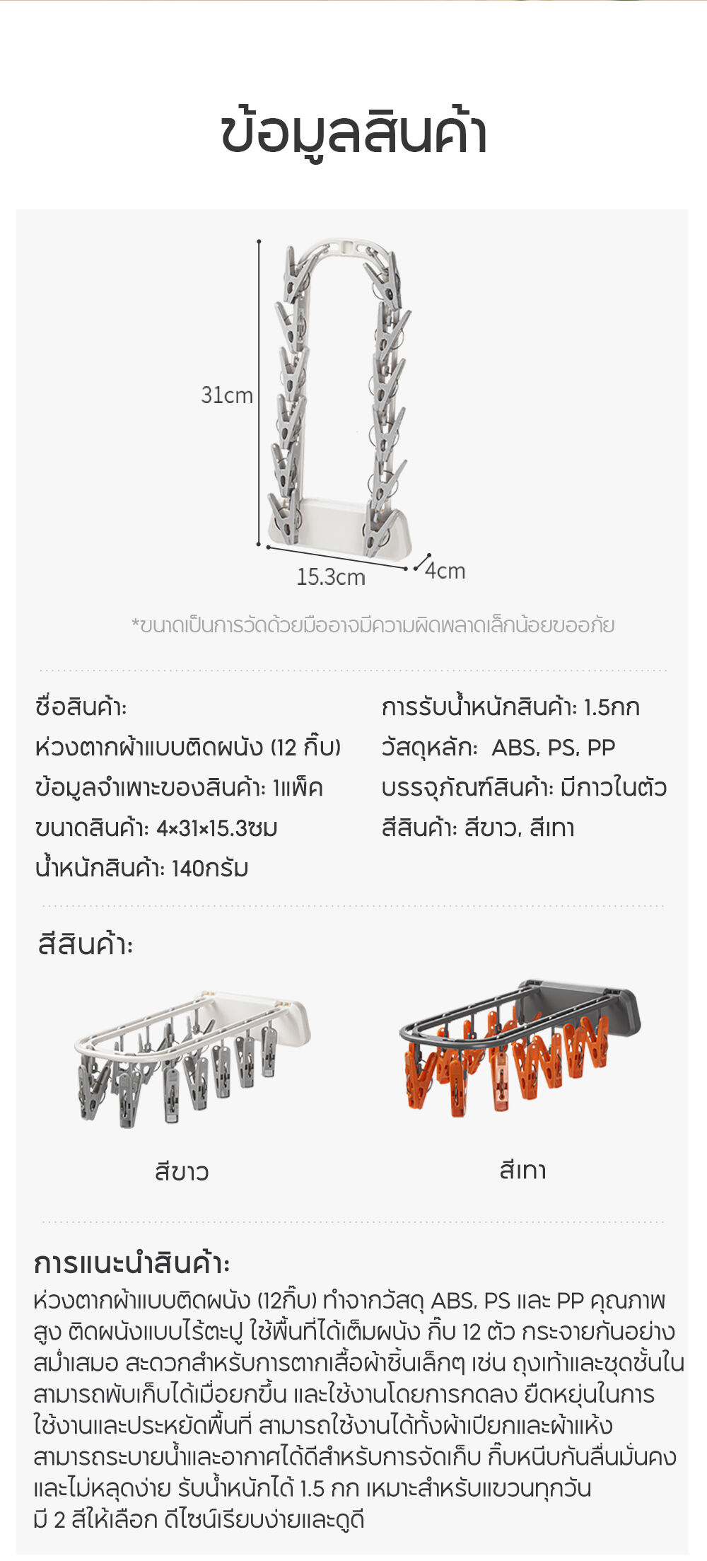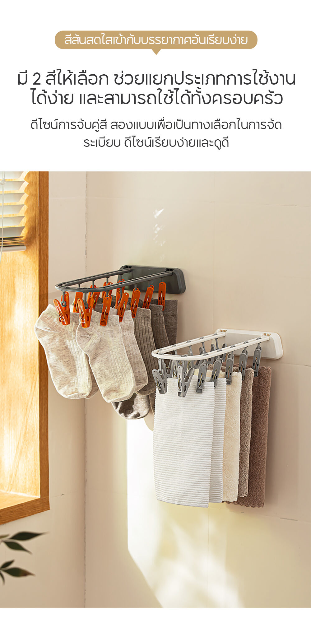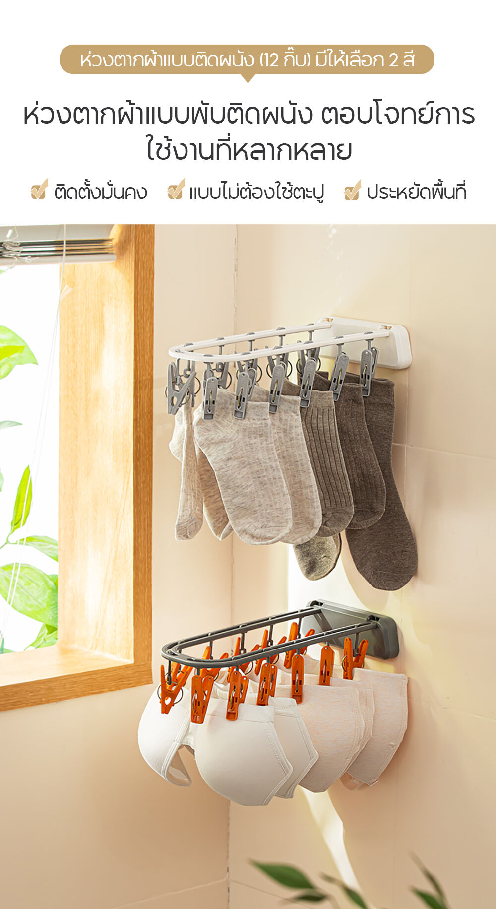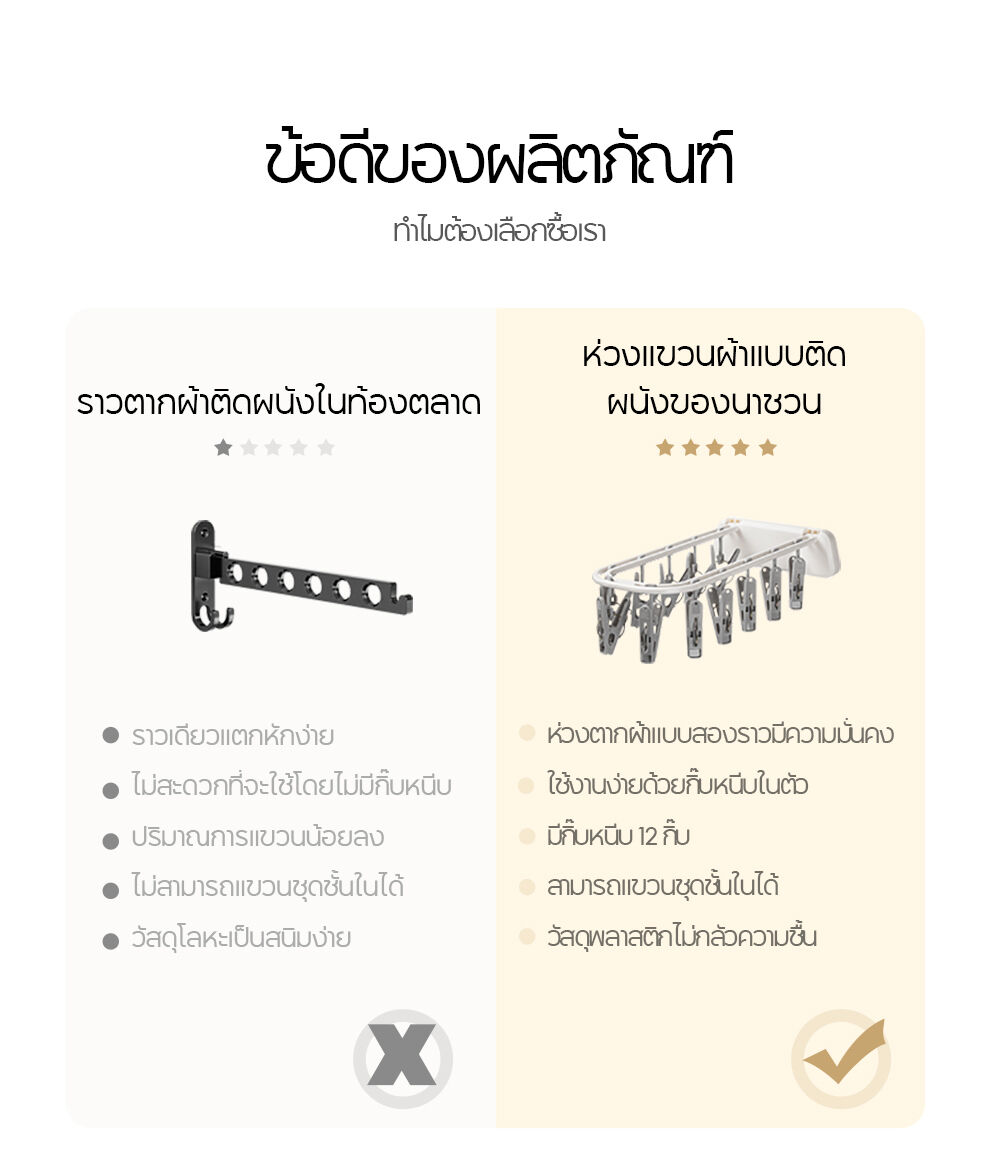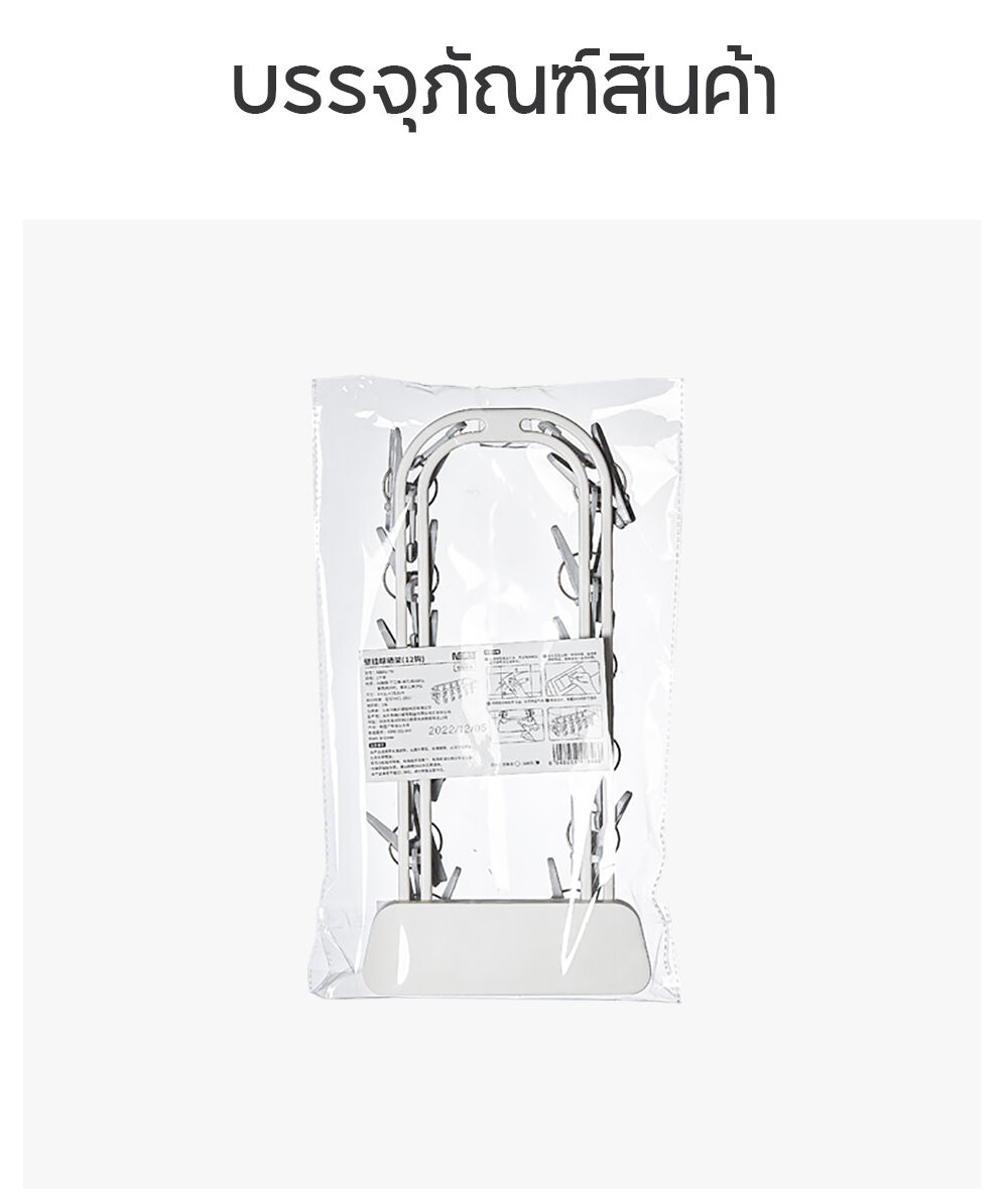 NaChuan Wall Hanging Drying Rack 12 Hooks A0642 #White ที่แขวนผ้าแบบติดผนัง สีขาว พร้อมตัวหนีบ 12 ตัว ติดตั้งง่าย ไม่ต้องเจาะผนัง ทำจากวัสดุที่แข็งแรงทนทาน ช่วยให้คุณตากถุงเท้า ชุดชั้นใน หรือผ้าเช็ดหน้าได้อย่างเป็นระเบียบ และแห้งไว ด้วยดีไซน์ที่ประหยัดพื้นที่ จึงตอบโจทย์สำหรับการใช้งานในพื้นที่จำกัด เช่น คอนโด หรือหอพัก