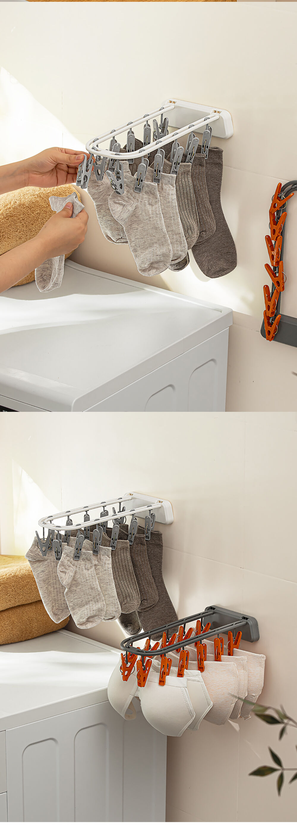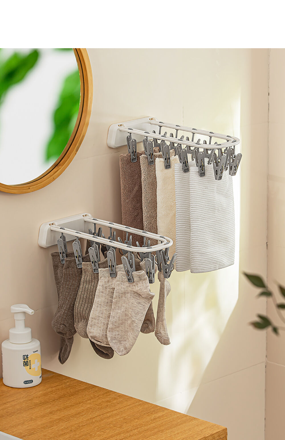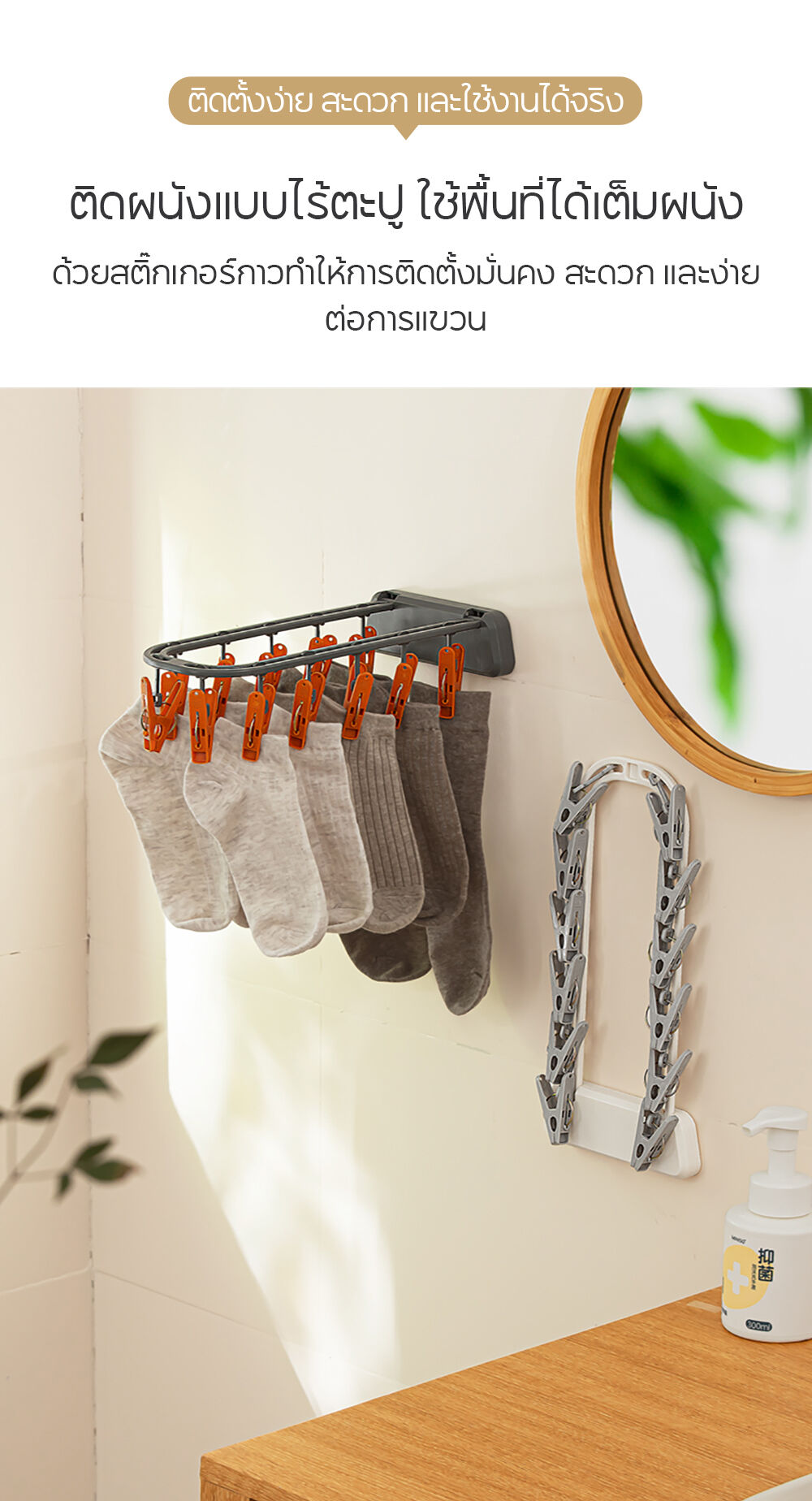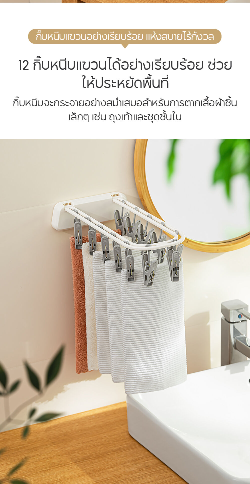 NaChuan Wall Hanging Drying Rack 12 Hooks A0642 #White ที่แขวนผ้าแบบติดผนัง สีขาว พร้อมตัวหนีบ 12 ตัว ติดตั้งง่าย ไม่ต้องเจาะผนัง ทำจากวัสดุที่แข็งแรงทนทาน ช่วยให้คุณตากถุงเท้า ชุดชั้นใน หรือผ้าเช็ดหน้าได้อย่างเป็นระเบียบ และแห้งไว ด้วยดีไซน์ที่ประหยัดพื้นที่ จึงตอบโจทย์สำหรับการใช้งานในพื้นที่จำกัด เช่น คอนโด หรือหอพัก