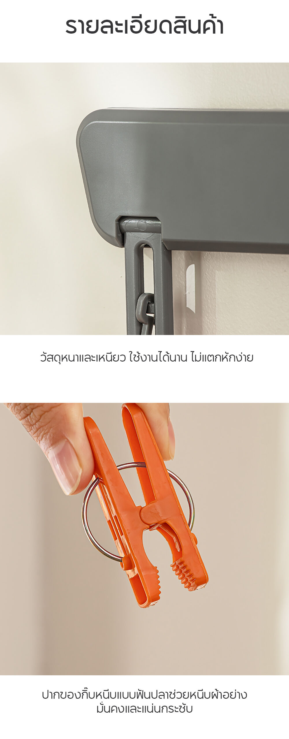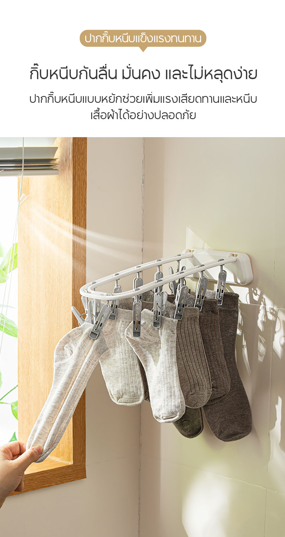 • ตัวหนีบ 12 ตัว แข็งแรง ทนทาน (12 Heavy-Duty Hooks) ยึดเกาะผ้าได้ดี ไม่หลุดง่าย
