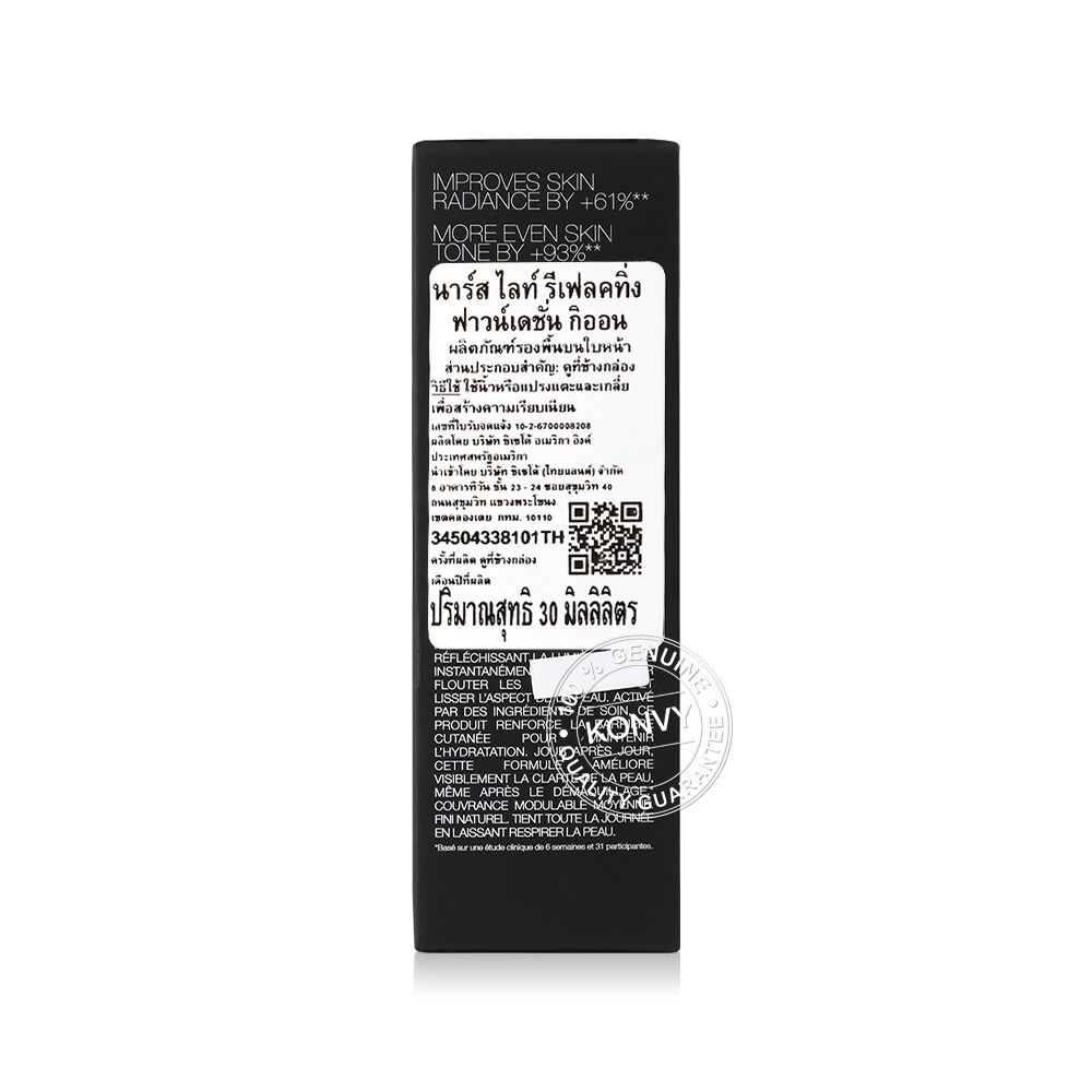 NARS Light Reflecting Foundation 30ml #Gion ผิวสวยสมบูรณ์แบบในทุกสภาพแสงกับรองพื้น สูตรผสมล้ำยุค หลอมรวมคุณสมบัติเมคอัพเข้ากับประสิทธิภาพถนอมผิว ปฏิบัติการเลือนอำพรางสภาพปรากฏของริ้วรอย ข้อบกพร่องต่างๆ เช่น รอยสิว จุดด่างดำ รอยแดง และสีผิวไม่สม่ำเสมอ แม้หลังเช็ดหรือล้างเมคอัพออก ด้วยส่วนผสมจากสกินแคร์ที่ช่วยเป็นเกราะป้องกันผิวจากสภาพแวดล้อม และแสงสีฟ้า พร้อมเก็บกักความชุ่มชื้นเป็นเกราะป้องกันผิว เหมาะสำหรับทุกสภาพผิวรวมไปถึงผิวอ่อนโยนแพ้ง่าย มอบความปกปิดระดับปานกลางพร้อมผลลัพธ์สวยอย่างเป็นธรรมชาติ ผิวยังสามารถหายใจได้และติดทนนานตลอดวัน เพื่อผิวสวยสมบูรณ์แบบในทุกสภาพแสง