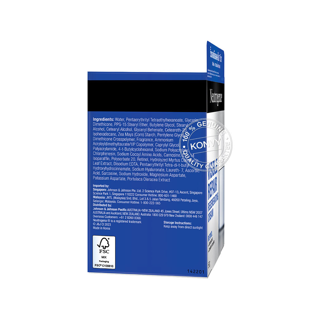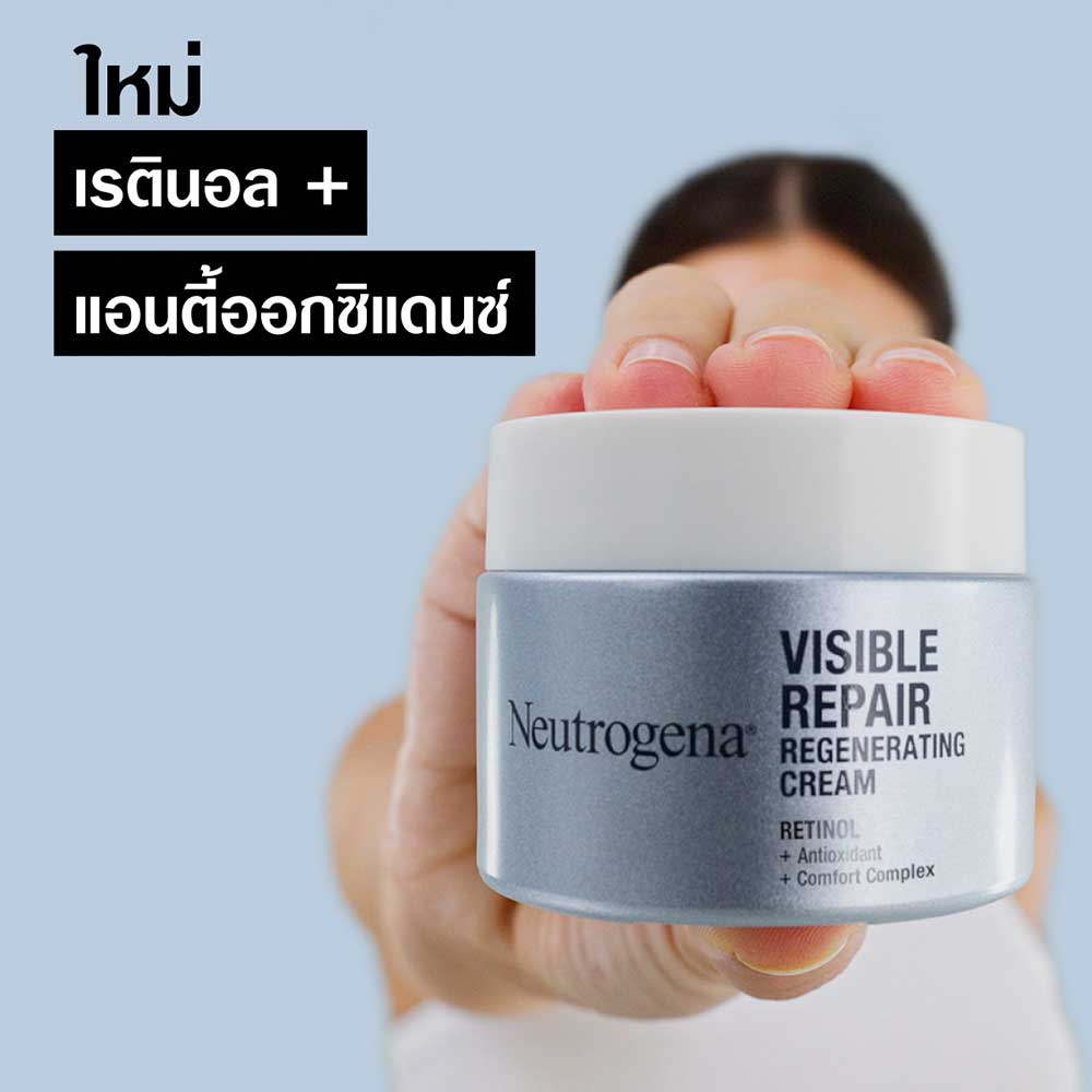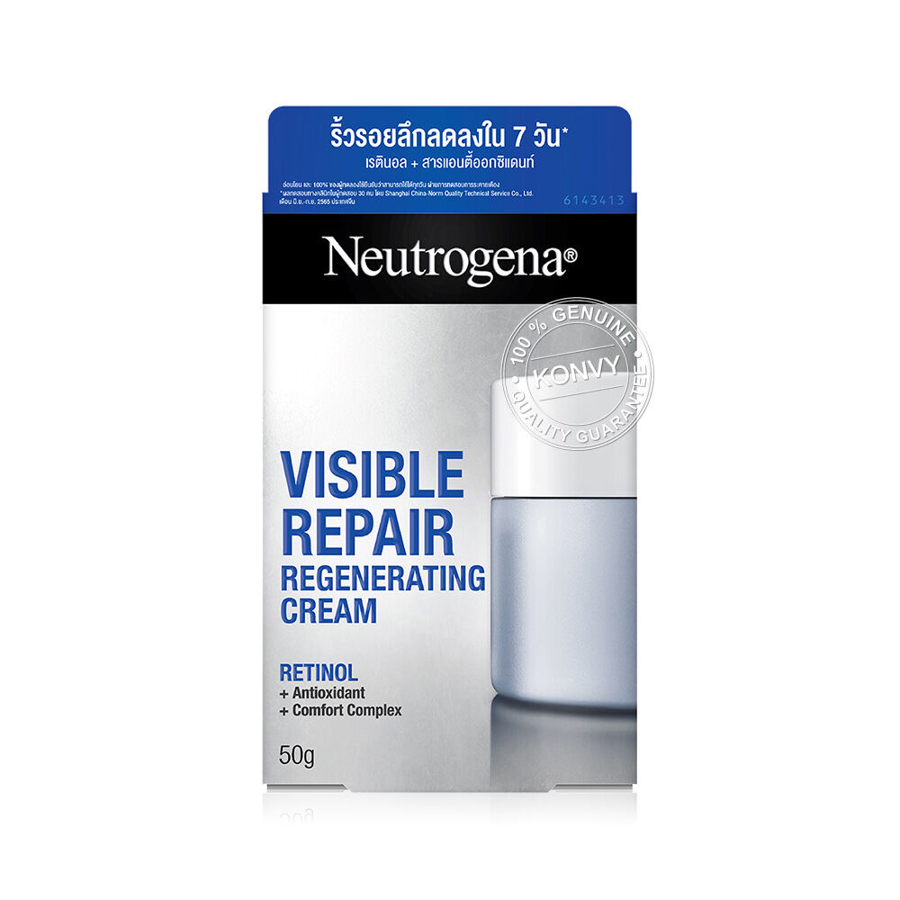 Neutrogena Visible Repair Regenerating Cream [50g x 2pcs] ครีมบำรุงผิวหน้าสูตรเรตินอล อุดมด้วยส่วนผสมที่ช่วยปลอบประโลมผิว ลดเลือนริ้วรอยให้แลดูจางลง พร้อมเพิ่มความชุ่มชื้น และบำรุงผิวให้กระชับเรียบเนียน เพื่อเผยผิวกระจ่างใส