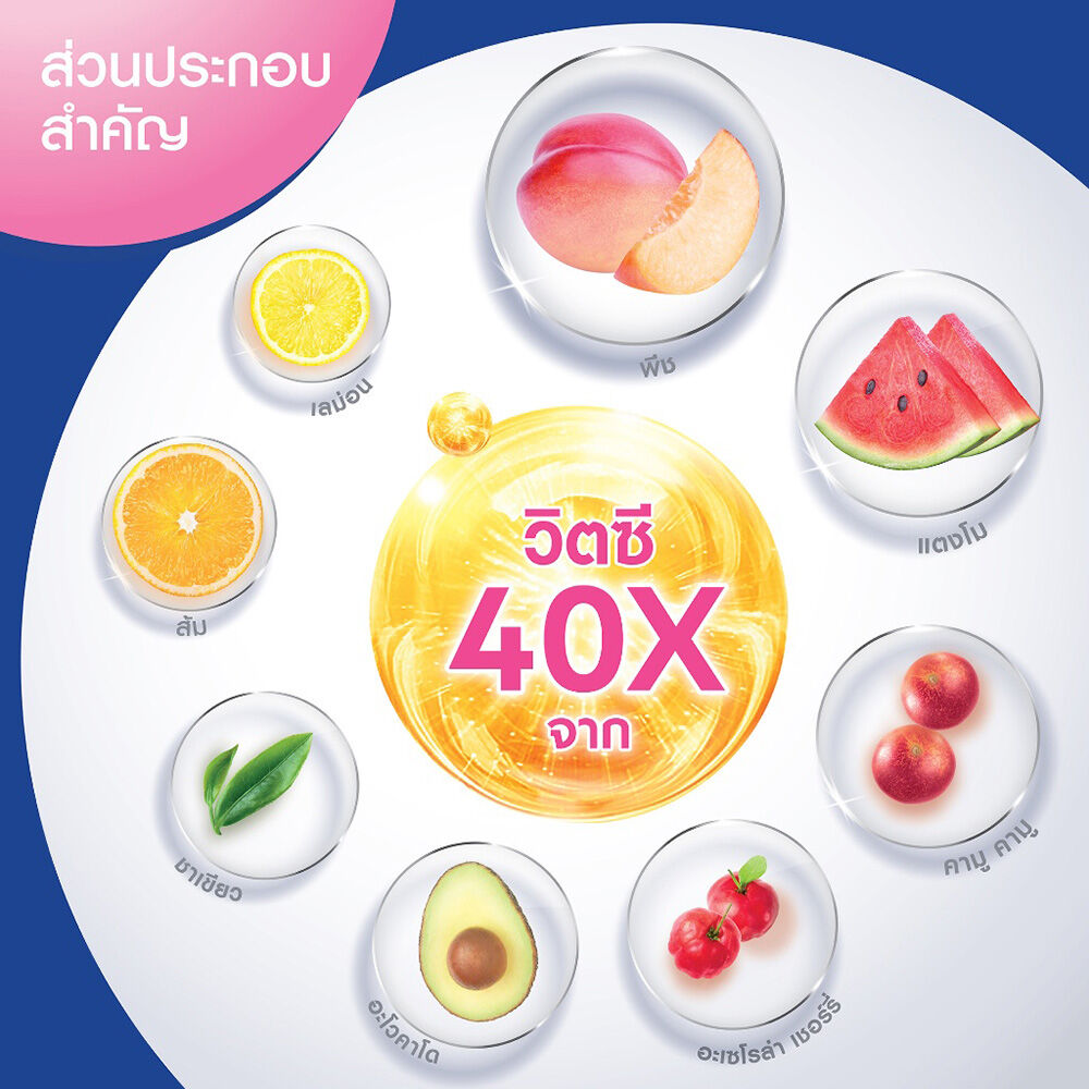 • 40X วิตามินซีจาก 8 สุดยอดอาหารผิว อโลเวร่า แตงกวา อะเซโรล่าเชอร์รี่ คามูคามู ส้ม อะโวคาโด ชาเขียว เลมอน