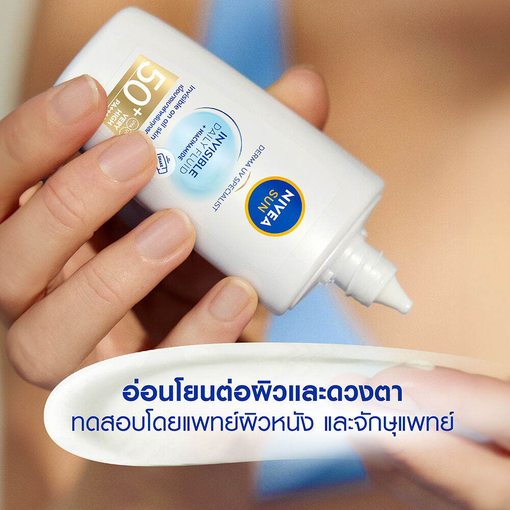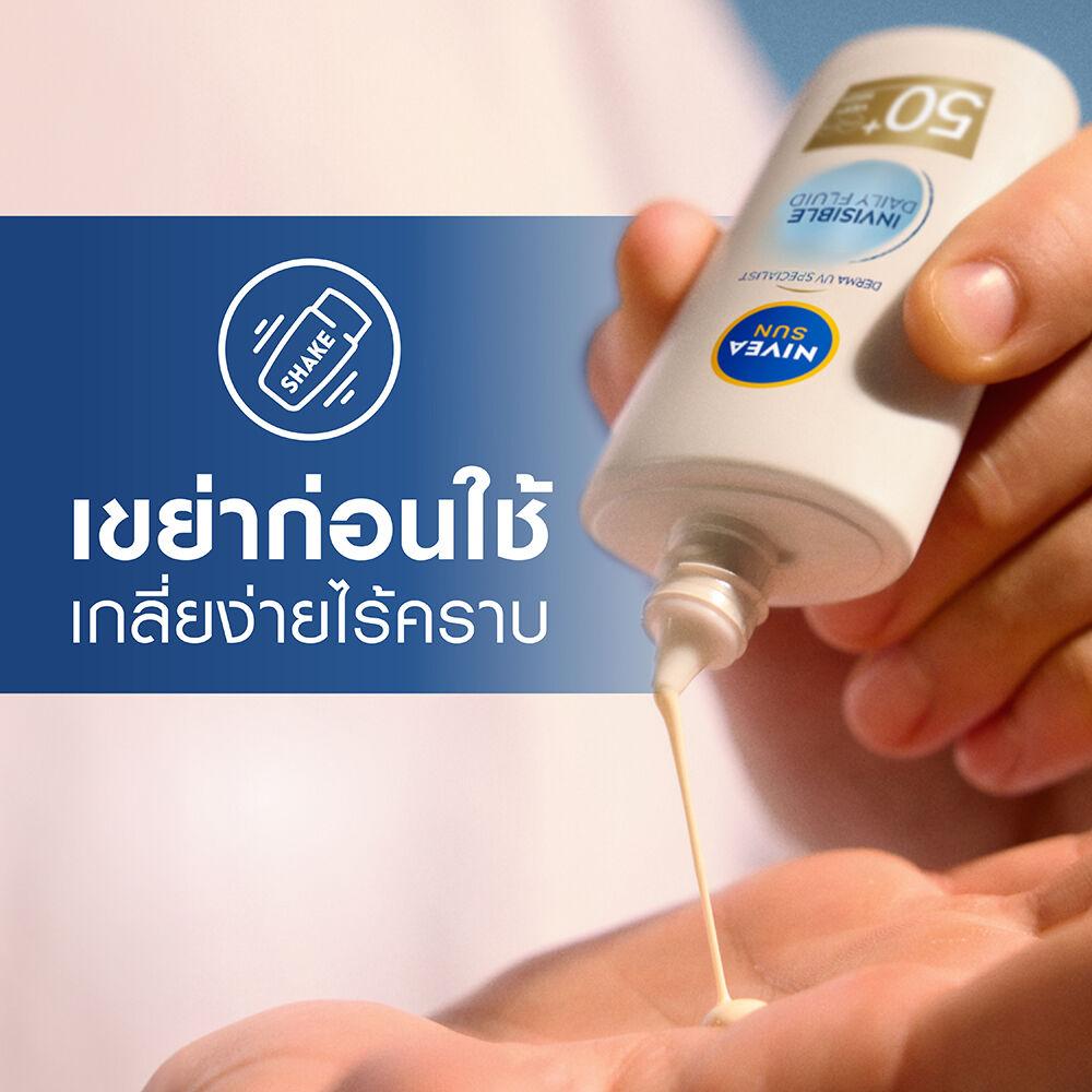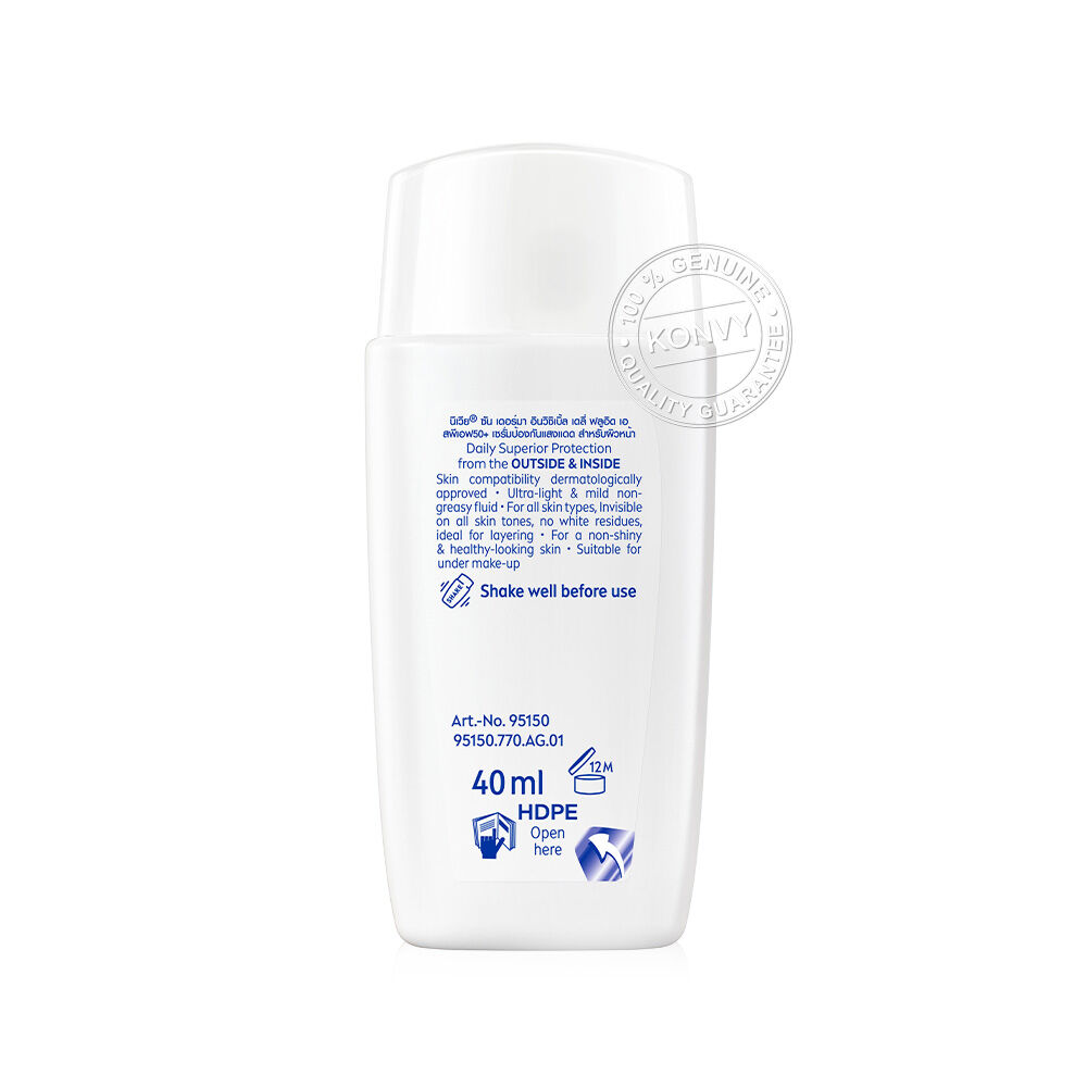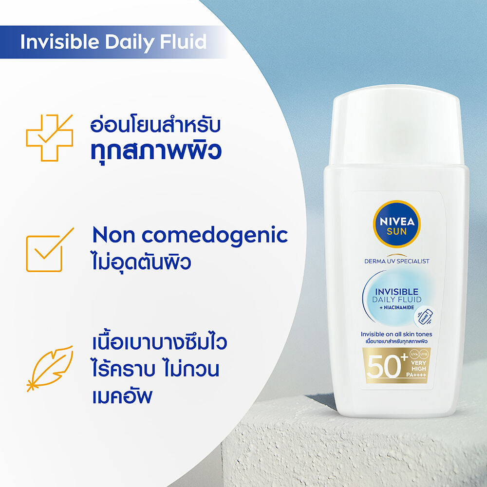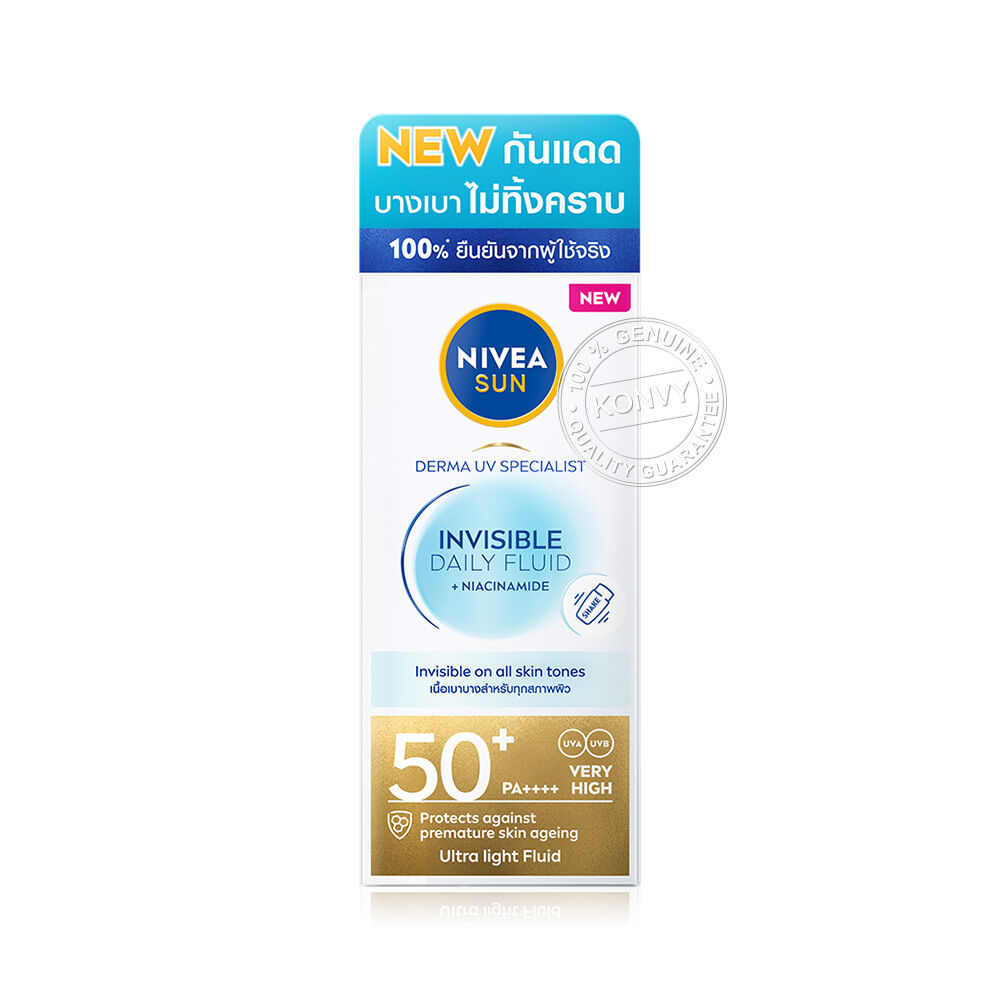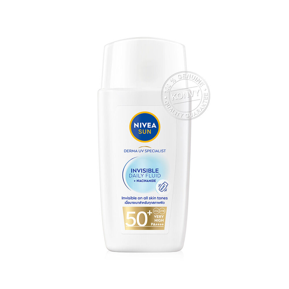 NIVEA Sun Derma Invisible Daily Fluid SPF50+ 40ml เซรั่มป้องกันแสงแดด สำหรับผิวหน้า เนื้อบางเบา อ่อนโยนต่อผิว ไม่เหนียว ไม่ทิ้งคราบ คุมมันยาวนาน สำหรับทุกสภาพผิวและผิวแพ้ง่าย