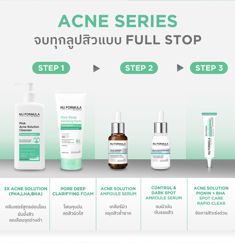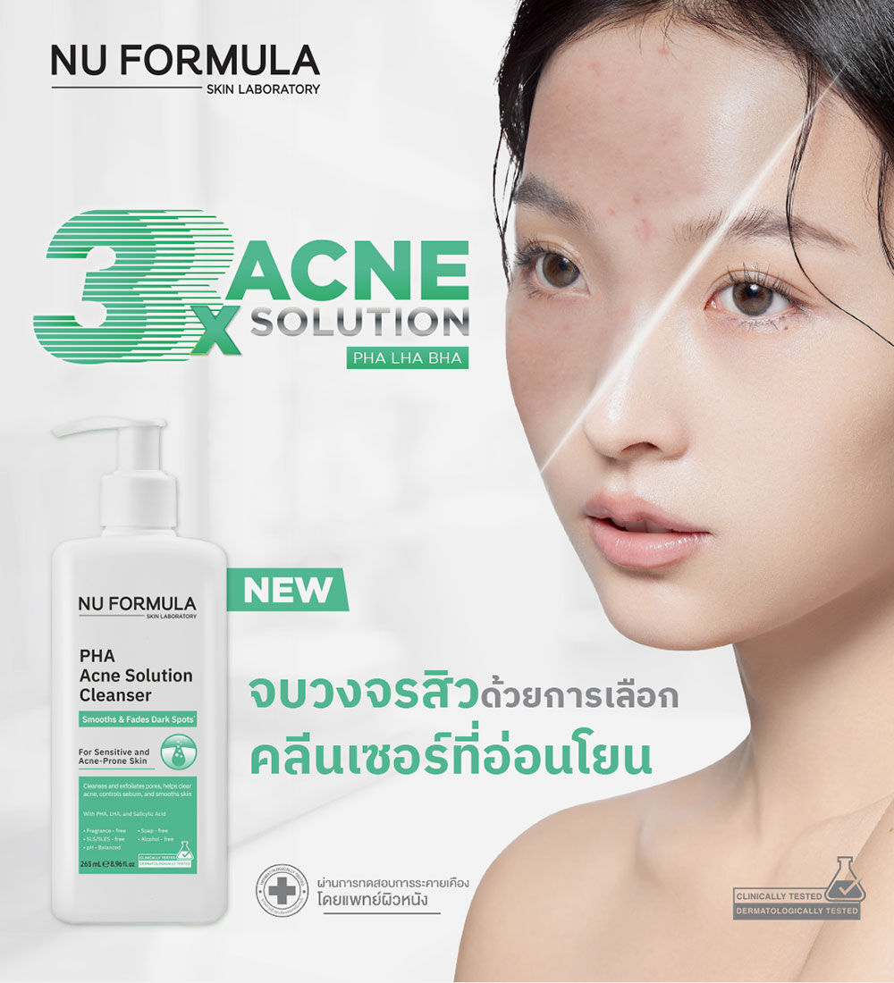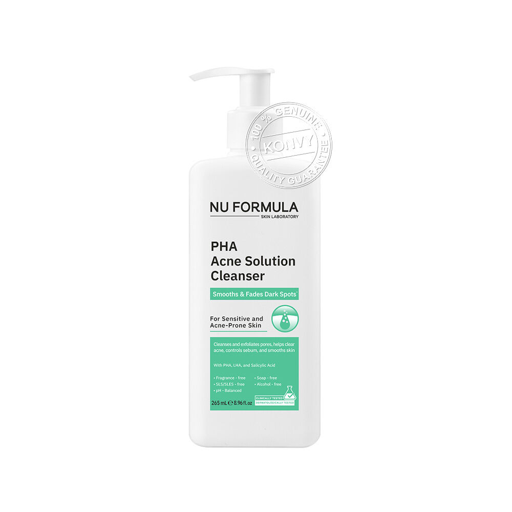 Nu Formula PHA Acne Solution Cleanser 265ml คลีนเซอร์ ด้วยพลัง 3X Acne Solution (PHA, LHA, BHA) ขจัดสิ่งสกปรกอย่างอ่อนโยน เผยผิวเกิดใหม่เรียบเนียนไร้รอยดำ ลดสิวอุดตัน ลดการอักเสบ จบวงจรสิว ล้างสะอาดลึกถึงรูขุมขน ไม่ทำให้ผิวแห้งตึง พร้อมฟื้นฟูเกราะป้องกันผิวให้แข็งแรง