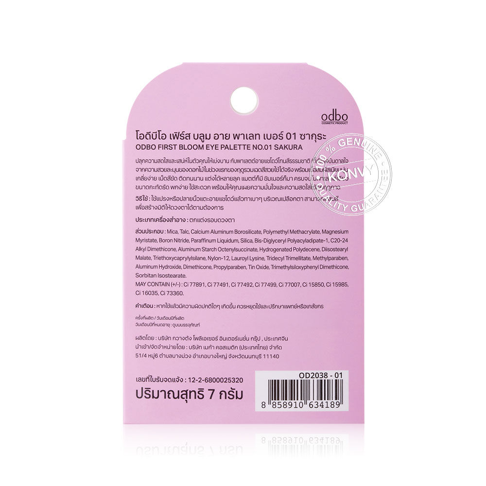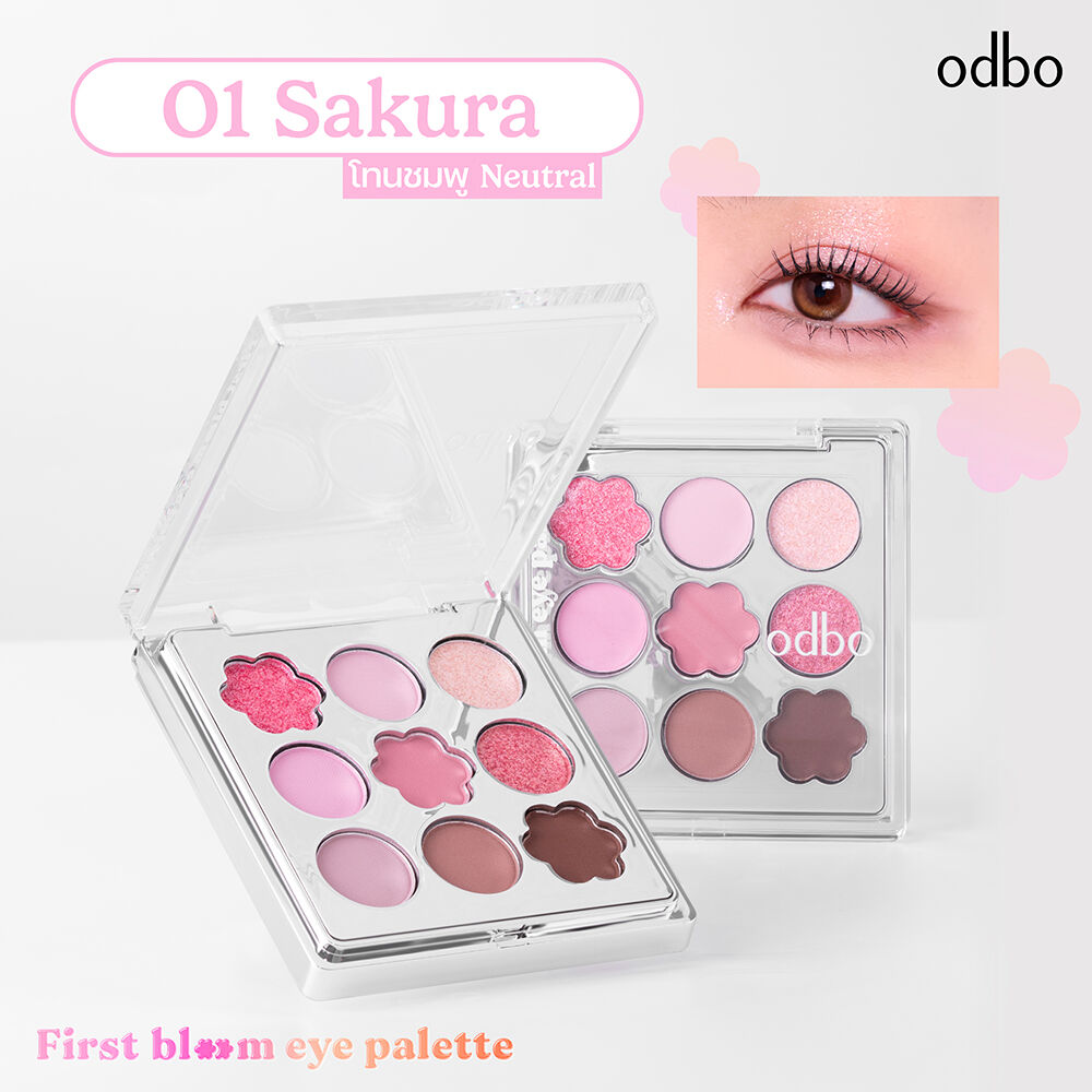 ODBO First Bloom Eye Palette 7g #01 Sakura #พาเลทดอกไม้ ปลุกความสดใสและเสน่ห์ของคุณให้เบ่งบาน กับพาเลทอายแชโดว์โทนสีธรรมชาติ ที่ได้แรงบันดาลใจจากความสวยละมุนของดอกไม้ในช่วงแรกของฤดู รวมเฉดสีสวยใช้ได้จริง พร้อมเนื้อสัมผัสเนียนนุ่ม เกลี่ยง่าย เม็ดสีชัด ติดทานนาน แต่งได้หลายลุค แมทก็มี ชิมเมอร์ก็มา ครบจบในพาเลทเดียว ขนาดกะทัดรัด พกง่าย ใช้สะดวก พร้อมให้คุณเผยความมั่นใจและความสดใสได้ทุกฤดูกาล