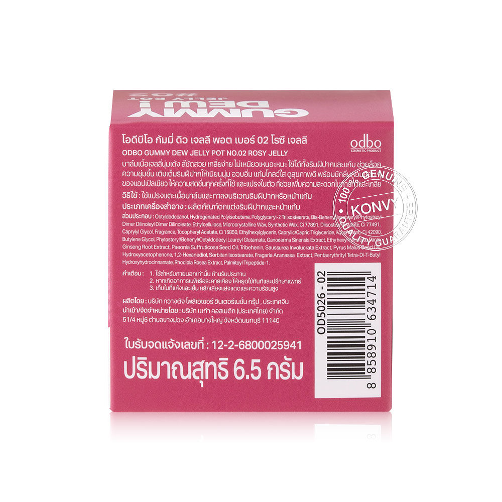 ODBO Gummy Dew Jelly Pot 6.5g #02 Rosy Jelly #ลิปพอตกัมมี่เจลลี่ บาล์มเนื้อเจลลี่นุ่มเด้ง สีชัดสวย เกลี่ยง่าย ไม่เหนียวเหนอะหนะ ใช้ได้ทั้งริมฝีปากและแก้ม ช่วยล็อกความชุ่มชื้น เติมเต็มริมฝีปากให้เนียนนุ่ม อวบอิ่ม แก้มโกลว์ใส ดูสุขภาพดี พร้อมมีกลิ่นหอมอ่อนๆ ของแอปเปิ้ลเขียว ให้ความสดชื่นทุกครั้งที่ใช้ และแปรงในตัว ที่ช่วยเพิ่มความสะดวกในการทาและเกลี่ย