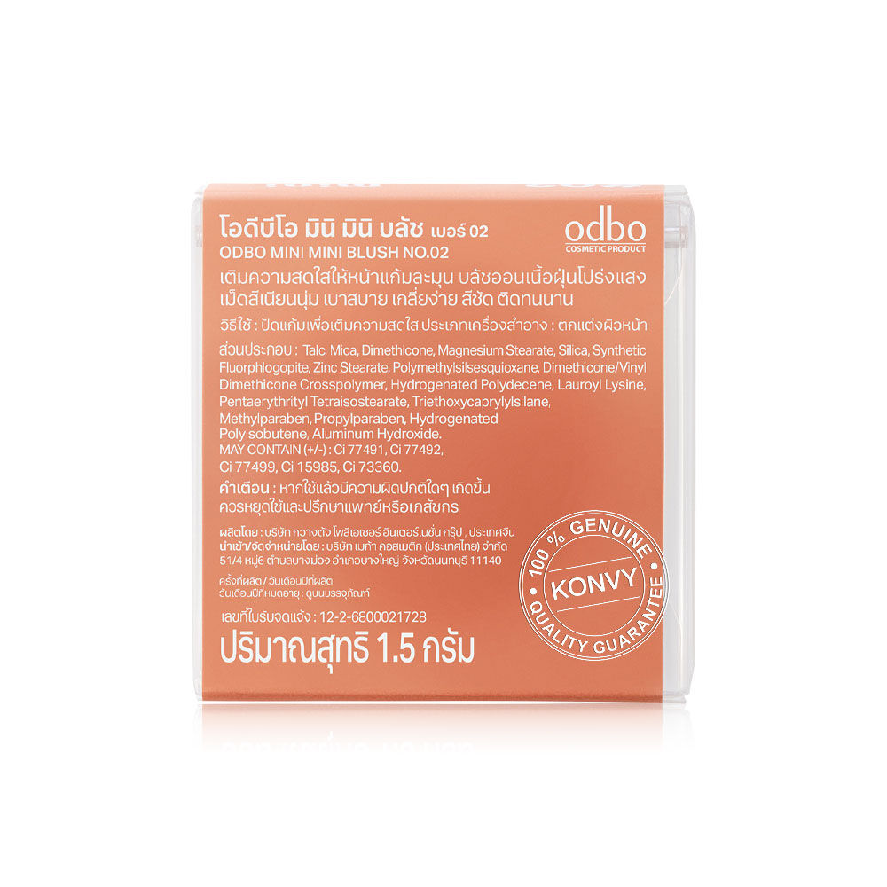 ODBO Mini Mini Blush 1.5g #OD1327-02 เติมความสดใสให้หน้าแก้ม ด้วยบลัชออนเนื้อฝุ่นโปร่งแสง ออกแบบมาให้แก้มของคุณดูระเรื่อเป็นธรรมชาติ เนื้อบลัชนุ่มละมุน เบา ฟูเหมือนมูส เกลี่ยง่าย ไม่เป็นคราบ และไม่ทำให้หนักหน้า เม็ดสีชัดเจน แต่ยังคงความโปร่งแสง ทำให้แก้มของคุณดูมีมิติ มีชีวิตชีวา และสวยอย่างลงตัว