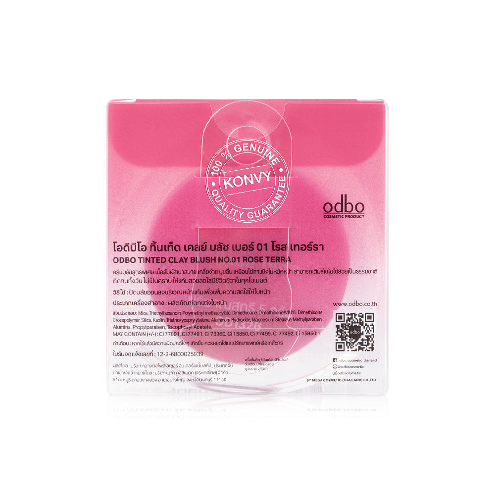 ODBO Tinted Clay Blush 5g #01 Rose Terra บลัชออนเนื้อเคลย์นุ่มเด้ง ที่มาพร้อมเม็ดสีแน่น ชัดเจนตั้งแต่ปาดแรก แต่ยังคงเบลนด์ง่าย ไม่เป็นคราบ ไม่ตกร่อง เนื้อสัมผัสยืดหยุ่นระหว่างครีมและแป้ง เกลี่ยแล้วเซ็ตตัวบนผิวแบบบางเบา ไม่เหนอะหนะ ติดทนนานตลอดวัน พร้อม 6 เฉดสีโทนธรรมชาติ ที่ออกแบบมาให้เข้ากับทุกลุค ทุกโทนผิว