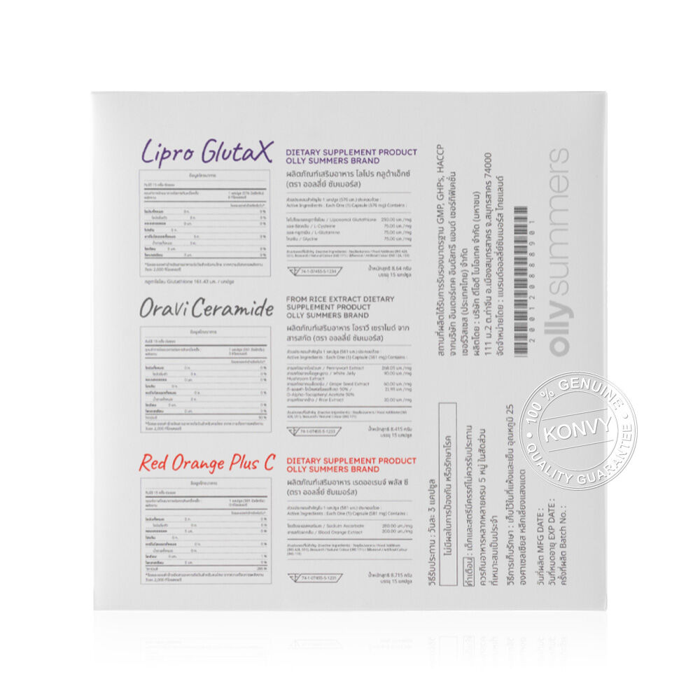 Olly Summers Boxset Oravi Ceramide + Lipro Gluta X + Red Orange Plus C 45 Capsules เซทผลิตภัณฑ์เสริมอาหาร ออลลี่ย์ ซัมเมอร์ส