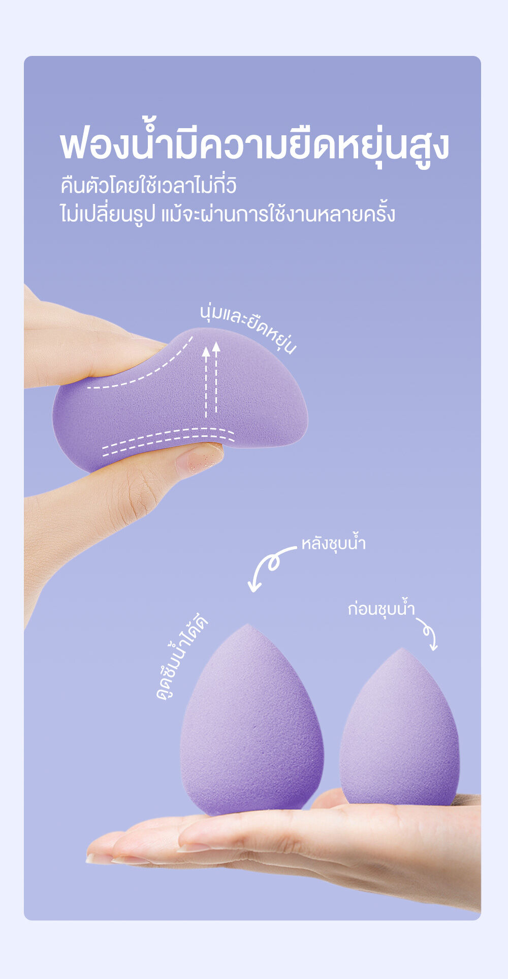 • เนื้อฟองน้ำนุ่มพิเศษ (Ultra Soft Texture) ยืดหยุ่น อ่อนโยนต่อผิว