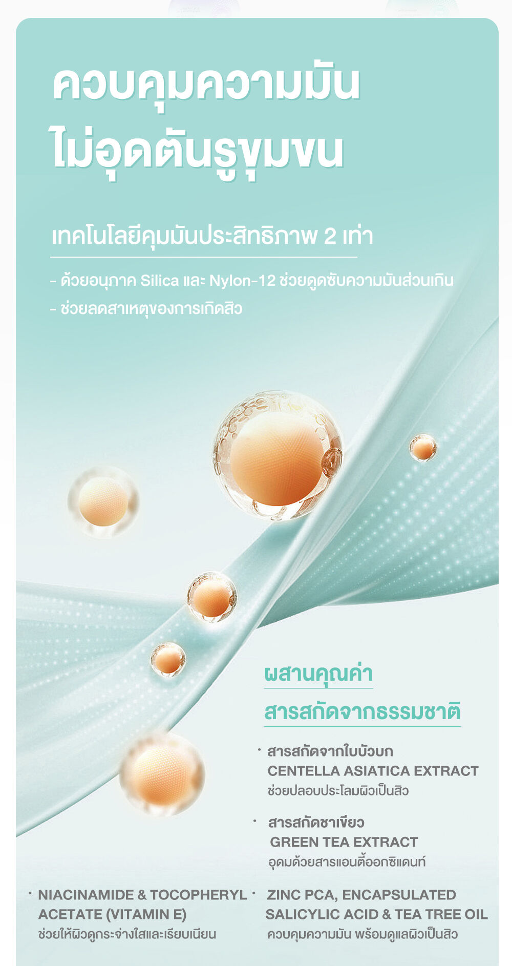 • คุมมันยาวนานตลอดวัน (2X Oil Control Technology) มอบผิวแมท ไม่มันเยิ้ม
