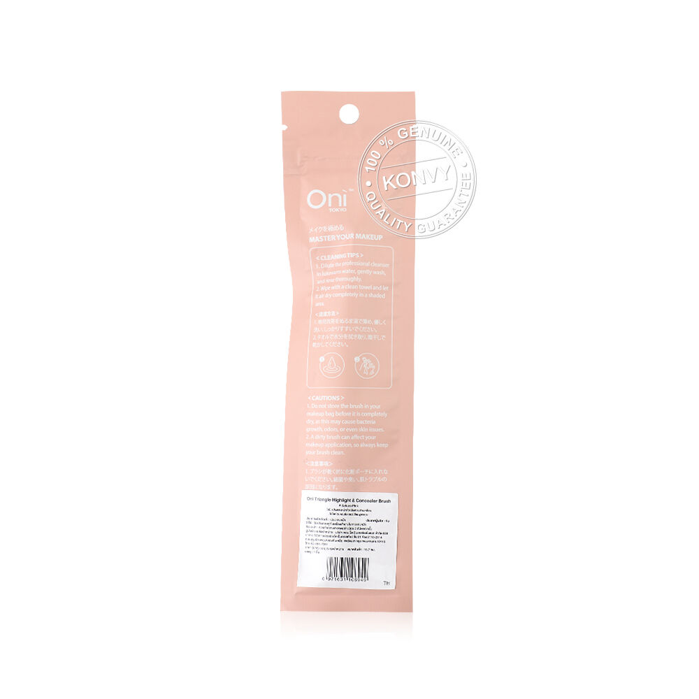 Oni Triangle Highlight & Concealer Brush #Sakura Pink แปรงคอนซีลเลอร์หัวตัดสามเหลี่ยม สีชมพูซากุระ ขนแปรงนุ่มละเอียดและหนาแน่น โดดเด่นด้วยดีไซน์หัวแปรงทรงสามเหลี่ยม (Triangle Head) ที่ออกแบบมาให้รับกับสรีระใบหน้าโดยเฉพาะ ช่วยให้การลงคอนซีลเลอร์หรือไฮไลท์เนื้อครีมได้เนียนสนิทไปกับผิว และสามารถเข้าถึงทุกมุมบนใบหน้าได้อย่างแม่นยำ