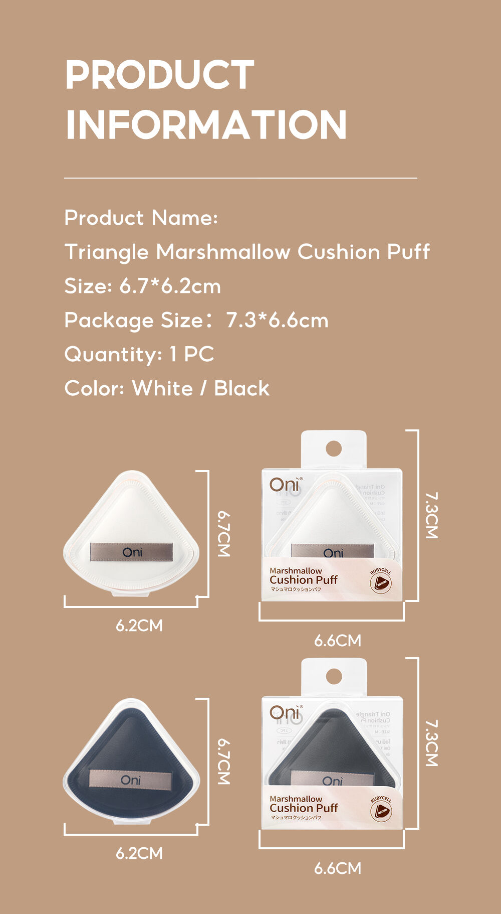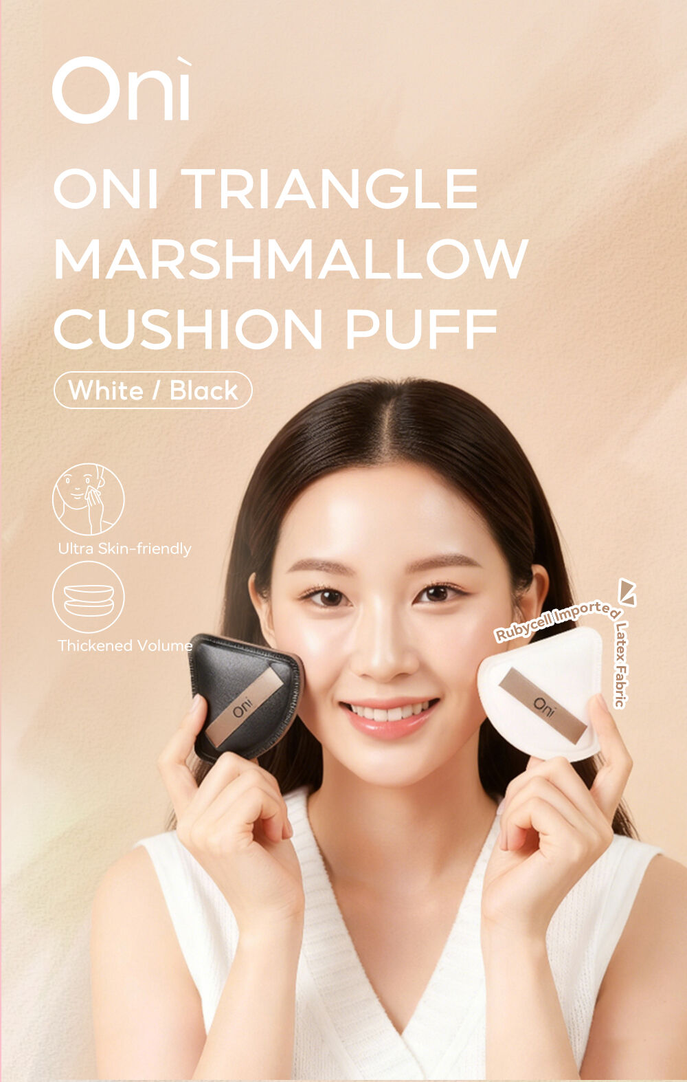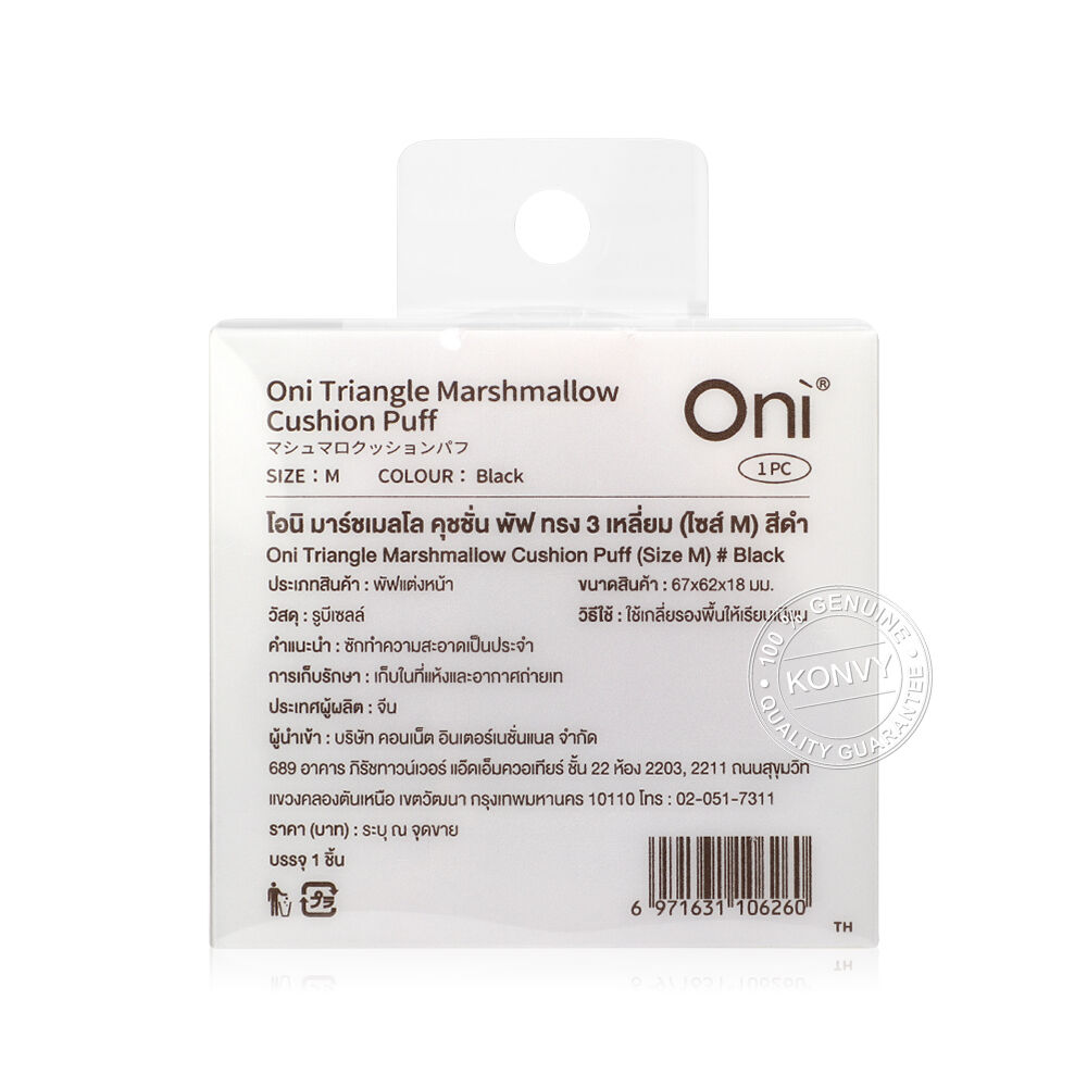 Oni Triangle Marshmallow Cushion Puff Size M #Black พัฟแต่งหน้ารูปทรงสามเหลี่ยม ไซส์ M สีดำ ผลิตจากวัสดุคุณภาพสูงแบบ Rubycell เนื้อนุ่มแน่นเหมือนมาร์ชแมลโลว์ ช่วยให้เกลี่ยรองพื้นได้เรียบเนียนสม่ำเสมอ เหมาะสำหรับใช้กับคุชชั่น รองพื้น หรือบีบีครีม
