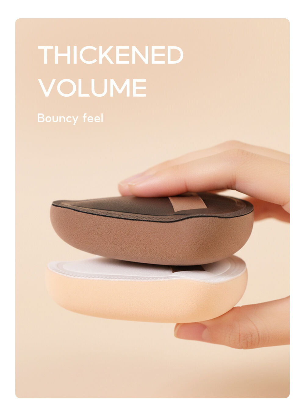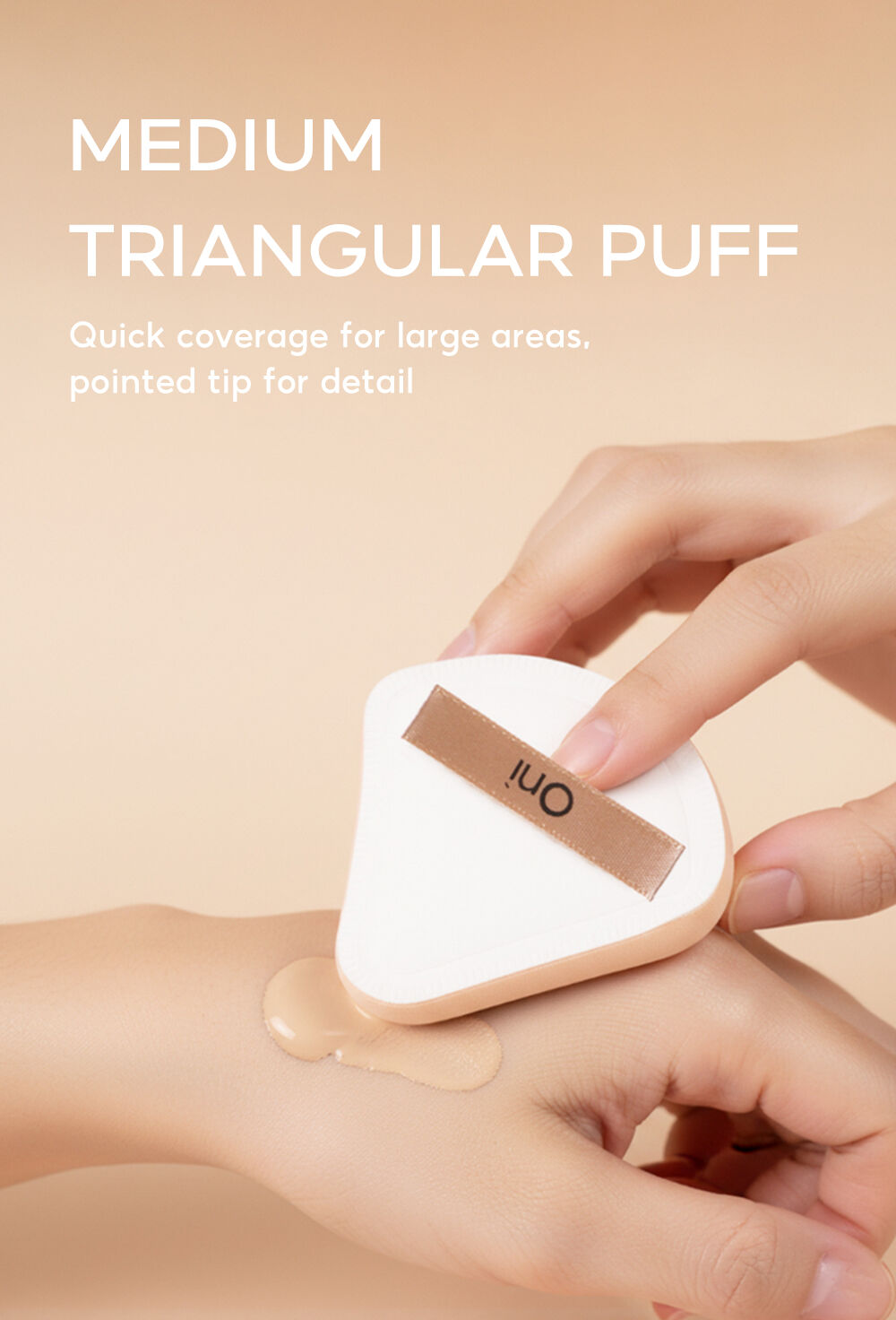 • พัฟทรงสามเหลี่ยม เข้าถึงมุมแคบของใบหน้าได้ง่าย เช่น ข้างจมูก ใต้ตา และขอบปาก