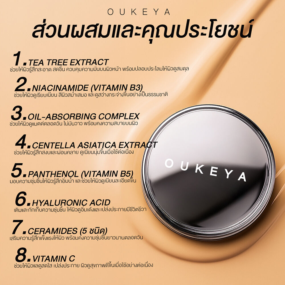 • ผสานสารบำรุงจากธรรมชาติ เช่น Niacinamide, Hyaluronic Acid และ Tea Tree Extract ช่วยบำรุงและปลอบประโลมผิวในทุกการแต่งหน้า