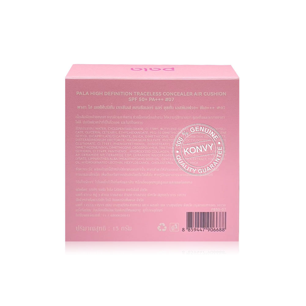 Pala High Definition Traceless Concealer Air Cushion SPF50+ PA+++ 15g #07 คุชชั่นเนื้อแมทบางเบา เกลี่ยง่าย ช่วยปกปิดผิวเรียบเนียนเป็นธรรมชาติ กันน้ำ กันเหงื่อ ติดทนนาน พร้อมปกป้องผิวจากแสงแดดด้วย SPF50+ PA+++