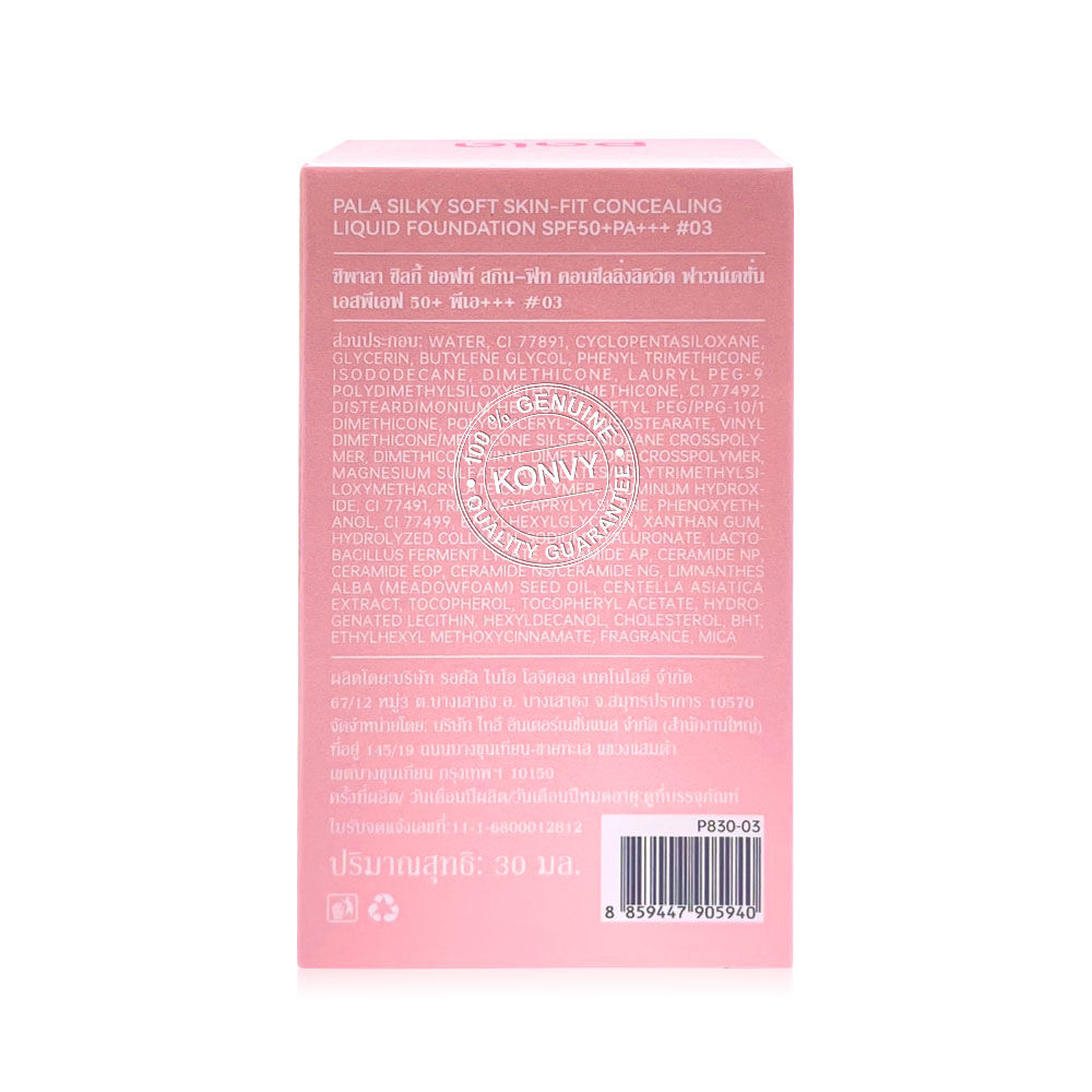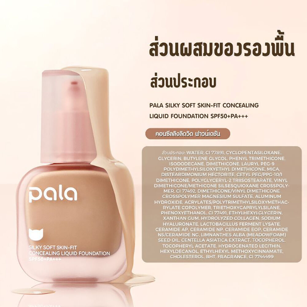 Pala Silky Soft Skin - Fit Concealing Liquid Foundation SPF50+ PA+++ 30ml #03 รองพื้นเนื้อบางเบา เกลี่ยง่าย ช่วยปกปิดผิวให้เรียบเนียนอย่างเป็นธรรมชาติ กันน้ำ กันเหงื่อ ติดทนนาน พร้อมปกป้องผิวจากแสงแดดด้วย SPF50+ PA+++
