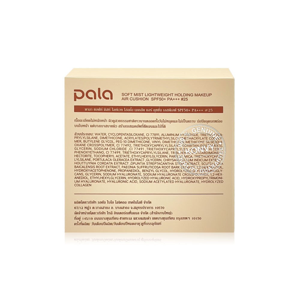 Pala Soft Mist Lightweight Holding Makeup Air Cushion SPF50+ PA+++ Refill 15g #25 คุชชั่นรีฟิลเนื้อบางเบา เกลี่ยง่าย ช่วยปกปิดจุดบกพร่องบนใบหน้า พร้อมควบคุมความมันได้ยาวนาน กันน้ำ กันเหงื่อ ติดทนนาน มอบผิวดูเรียบเนียน สวยเป็นธรรมชาติ