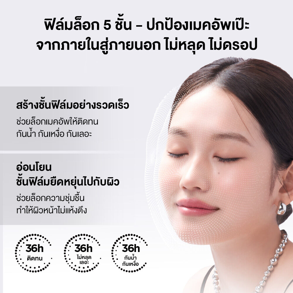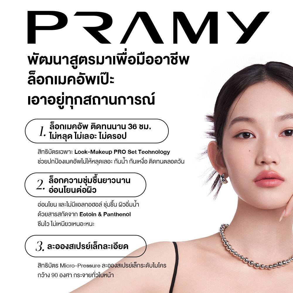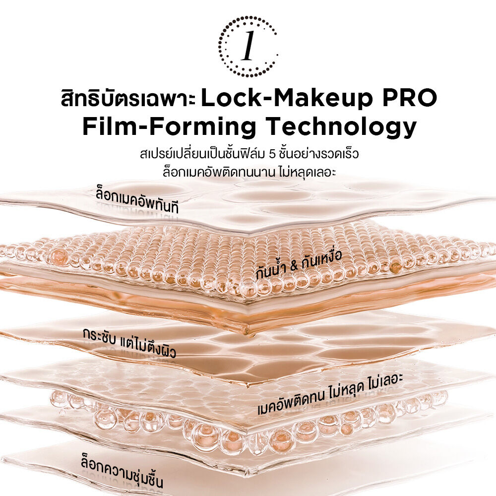 • ล็อกเมคอัพ ติดทนนาน ด้วยสิทธิบัตรเฉพาะ Lock-Makeup PRO Set Technology ช่วยปกป้องเมคอัพไม่ให้หลุดเลอะ กันน้ำ กันเหงื่อ ติดทนตลอดวัน
