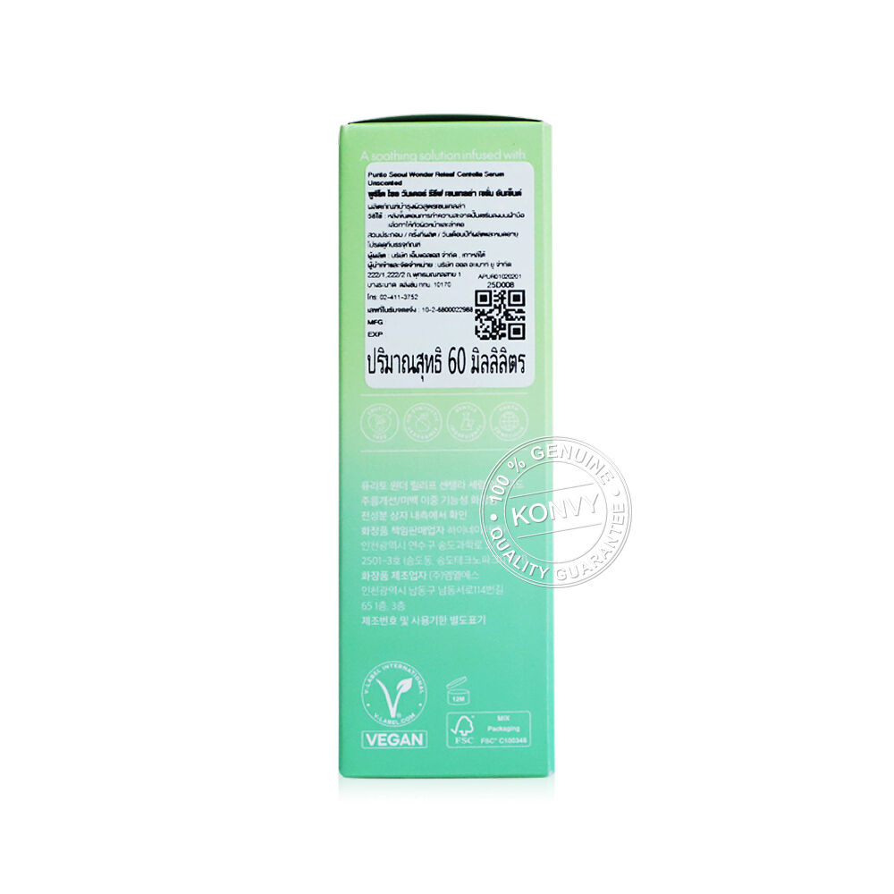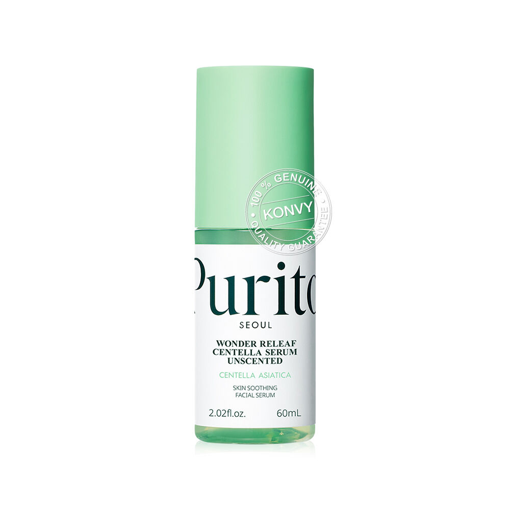 Purito Seoul Wonder Releaf Centella Serum Unscented 60ml เซรั่มใบบัวบก ที่อุดมด้วย Korean Centella Asiatica และ Allantoin ช่วยปลอบประโลมผิว ลดเลือนรอยแดง และปรับผิวให้เรียบเนียน ดูสม่ำเสมอ พร้อมด้วย Peptide ช่วยเสริมความยืดหยุ่นให้ผิว มอบผิวแข็งแรง ดูสุขภาพดี