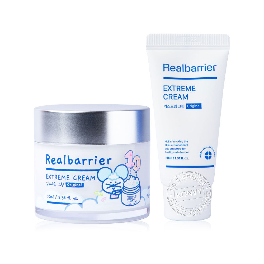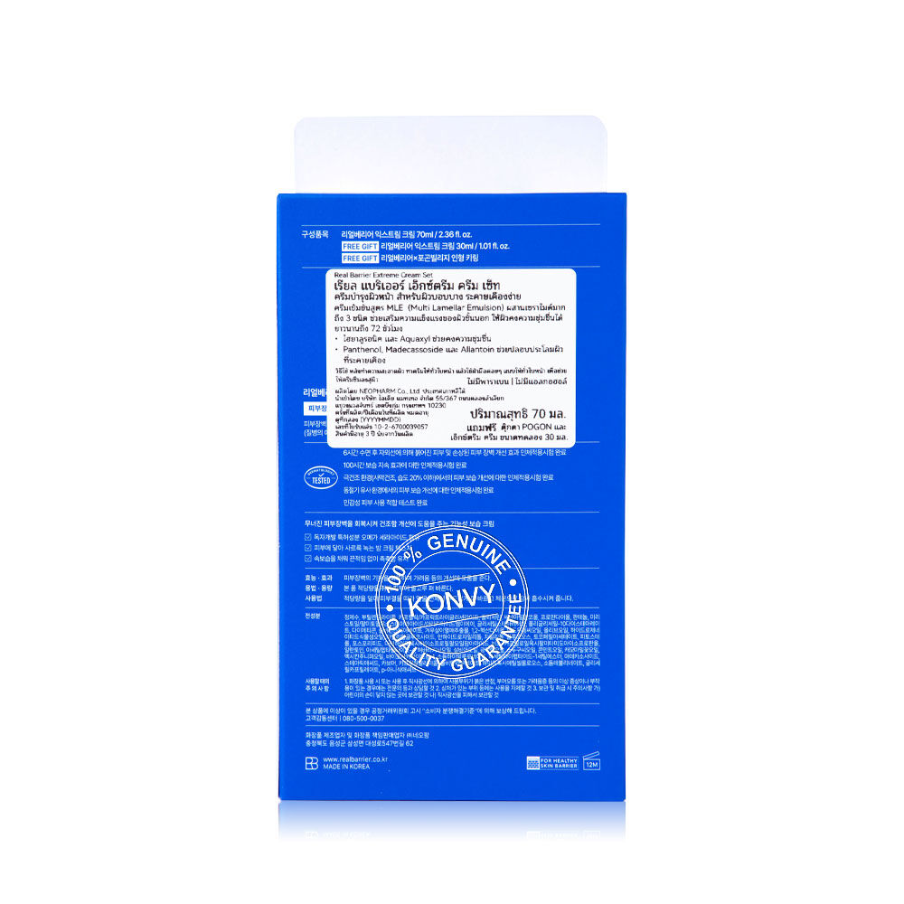 Real Barrier Extreme Cream Set [70ml + 30ml] [Free Gift Pogon 1pc] เซทครีมบำรุงผิวหน้า สำหรับผิวบอบบาง ระคายเคืองง่าย เนื้อครีมเข้มข้นสูตร MLE (Multi Lamellar Emulsion) ผสานเซราไมด์มากถึง 3 ชนิด ช่วยเสริมความแข็งแรงของผิวชั้นนอก ให้ผิวคงความชุ่มชื้นหลังใช้ ฟรีตุ๊กตา Pogon