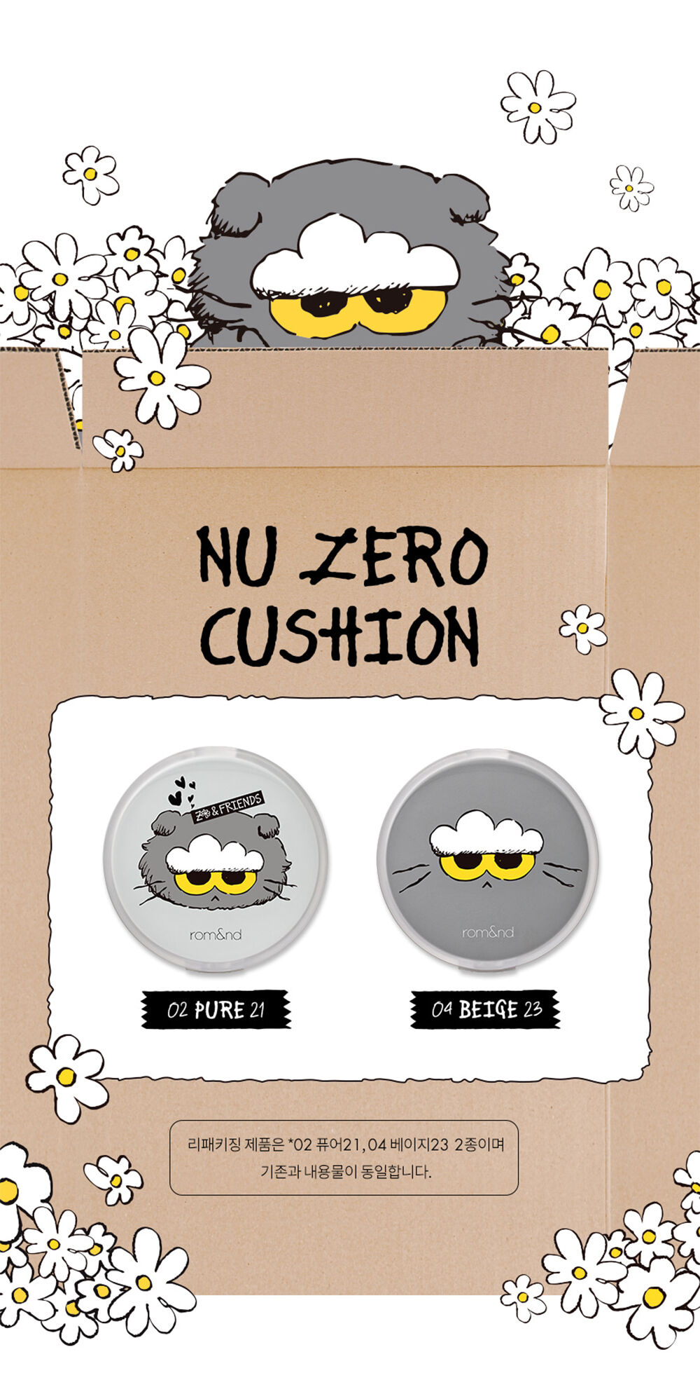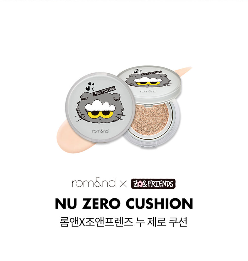 ROM&ND X Zo&Friends Nu Zero Cushion SPF24 PA++ 15g #23 Beige คุชชั่นเนื้อกึ่งแมท คอลเลคชัน Zo&Friends สุดคิวท์ บางเบา สบายผิว ติดทนนานตลอดวัน ด้วย Micro Powder และ Hyaluronic Acid ช่วยบำรุงผิวให้เรียบเนียน ชุ่มชื้น มอบฟินิชผิวเนียนสวย ดูเป็นธรรมชาติ