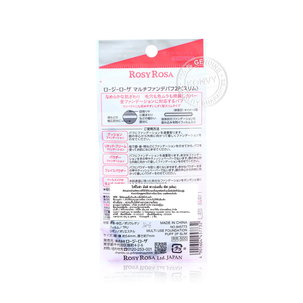 Rosy Rosa Multi Foundation Puff Slim 2pcs พัฟแต่งหน้าแบบ Slim เนื้อสัมผัสเนียนนุ่ม ออกแบบมาให้ใช้ได้กับรองพื้นทุกชนิด ช่วยปกปิดรูขุมขนได้อย่างเรียบเนียน และติดทนกับผิว