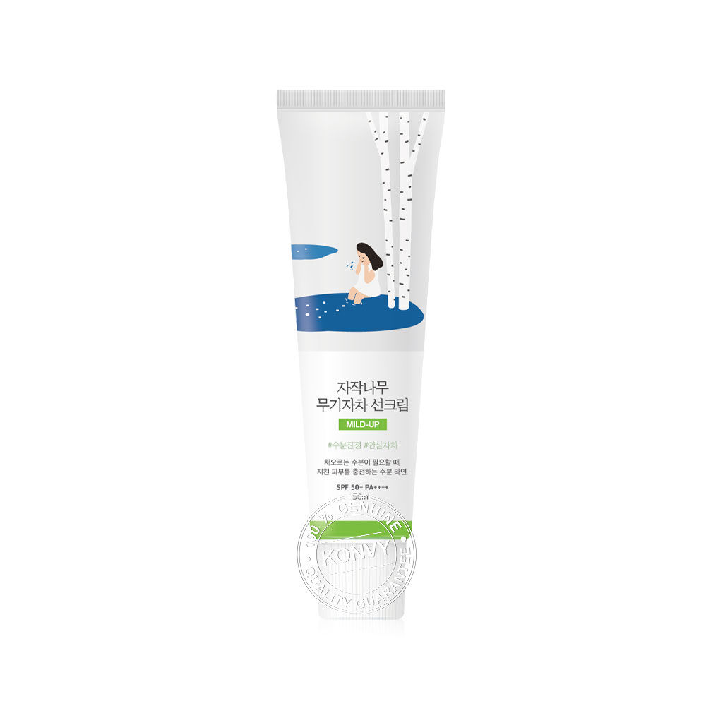 Round Lab Birch Juice Moisturizing Mild-Up Sunscreen SPF50+ PA++++ 50ml ครีมกันแดดสูตรอ่อนโยน เนื้อซอฟท์ครีมบางเบา ไม่เหนียวเหนอะหนะ ผสานสารสกัดจาก Birch Juice และ Zinc Oxide ช่วยปลอบประโลมผิว และปกป้องผิวจากรังสี UV พร้อมด้วย Vitamin D และ Hyaluronic Acid ช่วยฟื้นบำรุงและเติมความชุ่มชื้นให้ผิวที่แห้งขาดน้ำ มอบผิวเนียนใส ดูอิ่มน้ำ ปกป้องมั่นใจตลอดวัน