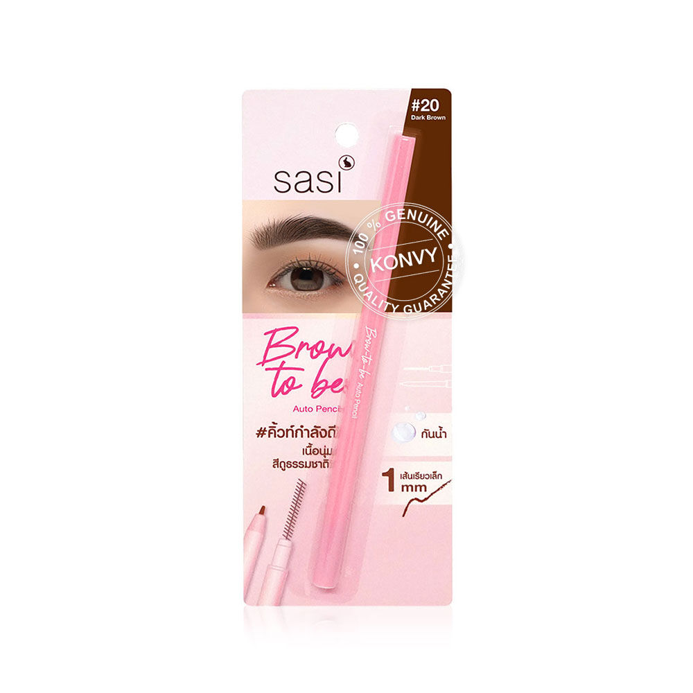 SASI Brow - to - be Auto Pencil 0.1g #20 Dark Brown ดินสอเขียนคิ้วแบบออโต้ เนื้อสัมผัสนุ่ม สีชัดแลดูเป็นธรรมชาติ กันน้ำ กันเหงื่อ ติดทนนาน ปลายดินสอเรียวเล็กช่วยให้เขียนง่ายได้คิ้วรูปสวย ไม่ว่าจะวาดโครงหรือแรเงาตามที่ต้องการ มาพร้อมหัวแปรงปัดที่ช่วยเกลี่ยให้เส้นคิ้วดูเนียนยิ่งขึ้น