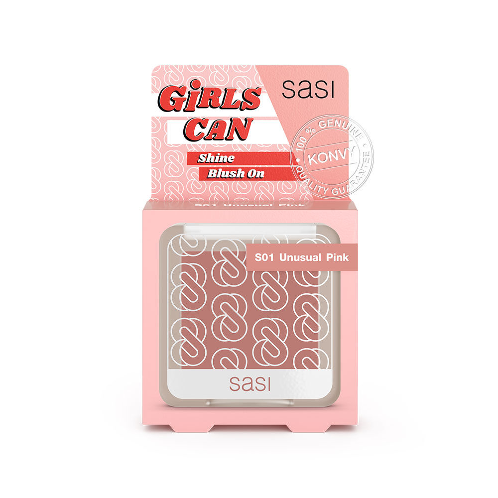 SASI Girls Can Shine Blush On 6g #S01 Unusual Pink บลัชออนผสมชิมเมอร์เนื้อละเอียด ให้พวงแก้มสวย เล่นแสงดูมีมิติ เปล่งประกายโดดเด่นได้ไม่เหมือนใคร พร้อมสารบำรุงจากธรรมชาติ อ่อนโยน ไม่ระคายเคือง สีใช้ง่าย เบลนได้ดี ไม่กระจุกตัว ติดทนทั้งวัน มีให้เลือกถึง 5 สี เหมาะกับสาวๆ ทุกสไตล์และทุกสีผิว