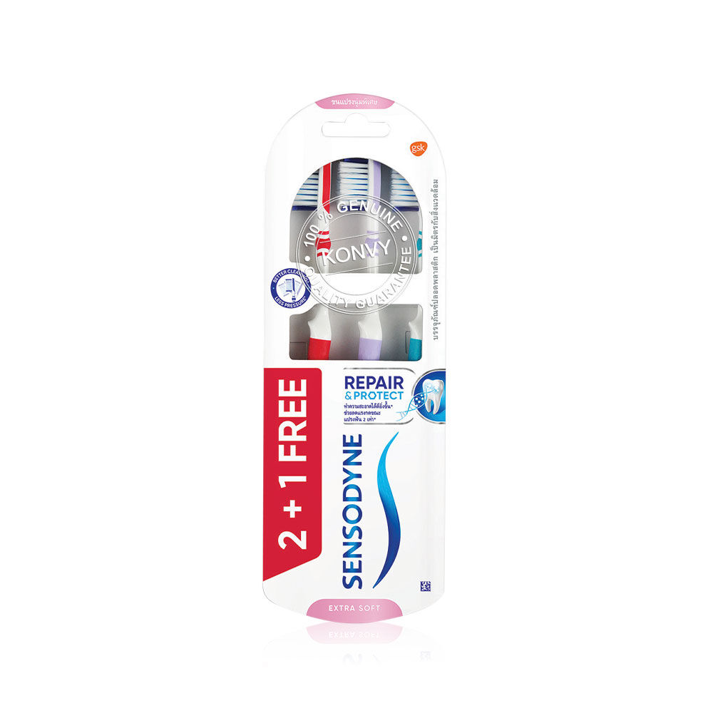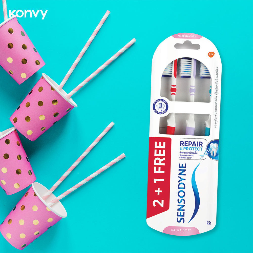Sensodyne Repair & Protect Extrasoft Toothbrush 1Pack [3pcs] แปรงสีฟัน 3 ชิ้น ที่ออกแบบมาเป็นพิเศษสำหรับผู้มีอาการเสียวฟัน ขนแปรงนุ่มพิเศษ ช่วยป้องกันเคลือบฟันจากการแปรงฟันที่แรงเกินไป