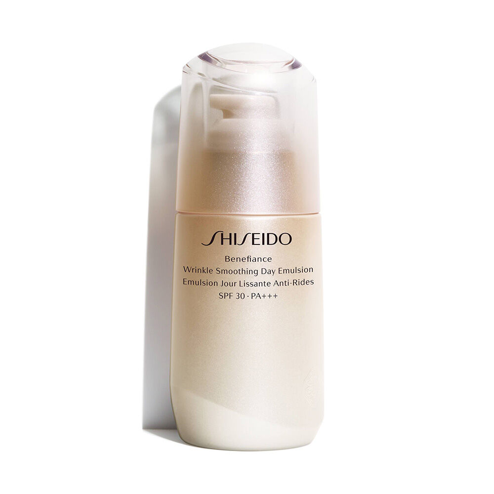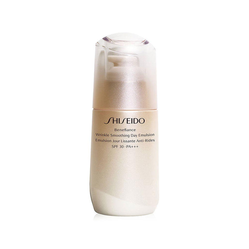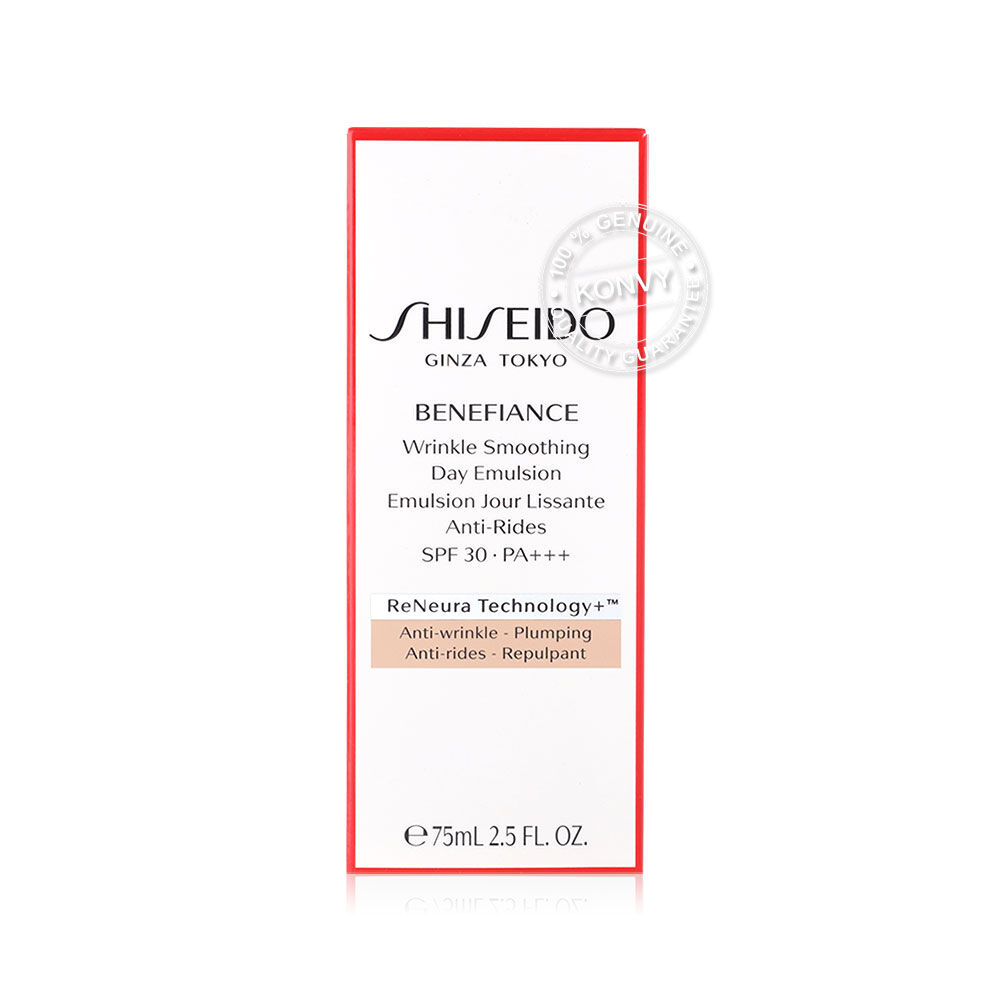 Shiseido Benefiance Wrinkle Smoothing Day Emulsion SPF 30PA+++ 75ml อีมัลชั่นต่อต้านริ้วรอยแห่งวัยสูตรกลางวัน มาพร้อมสารกันแดด SPF 30PA+++ ด้วยเทคโนโลยีเอกสิทธิ์ ReNeura+ ที่ช่วยกระตุ้นปลายประสาทให้เปิดรับการฟื้นฟูจากผลิตภัณฑ์ดูแลผิวอื่นๆ ให้ดียิ่งขึ้น สัมผัสความชุ่มชื่นและเปล่งปลั่งจากภายใน เพื่อผิวเรียบเนียนกระจ่างใส ลดเลือนริ้วรอยให้ผิวแลดูอ่อนเยาว์ พร้อมทั้งป้องกันมลภาวะตลอดทั้งวัน