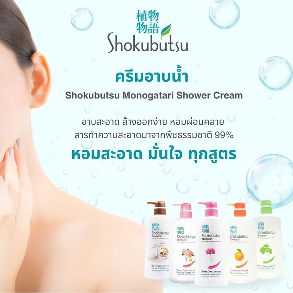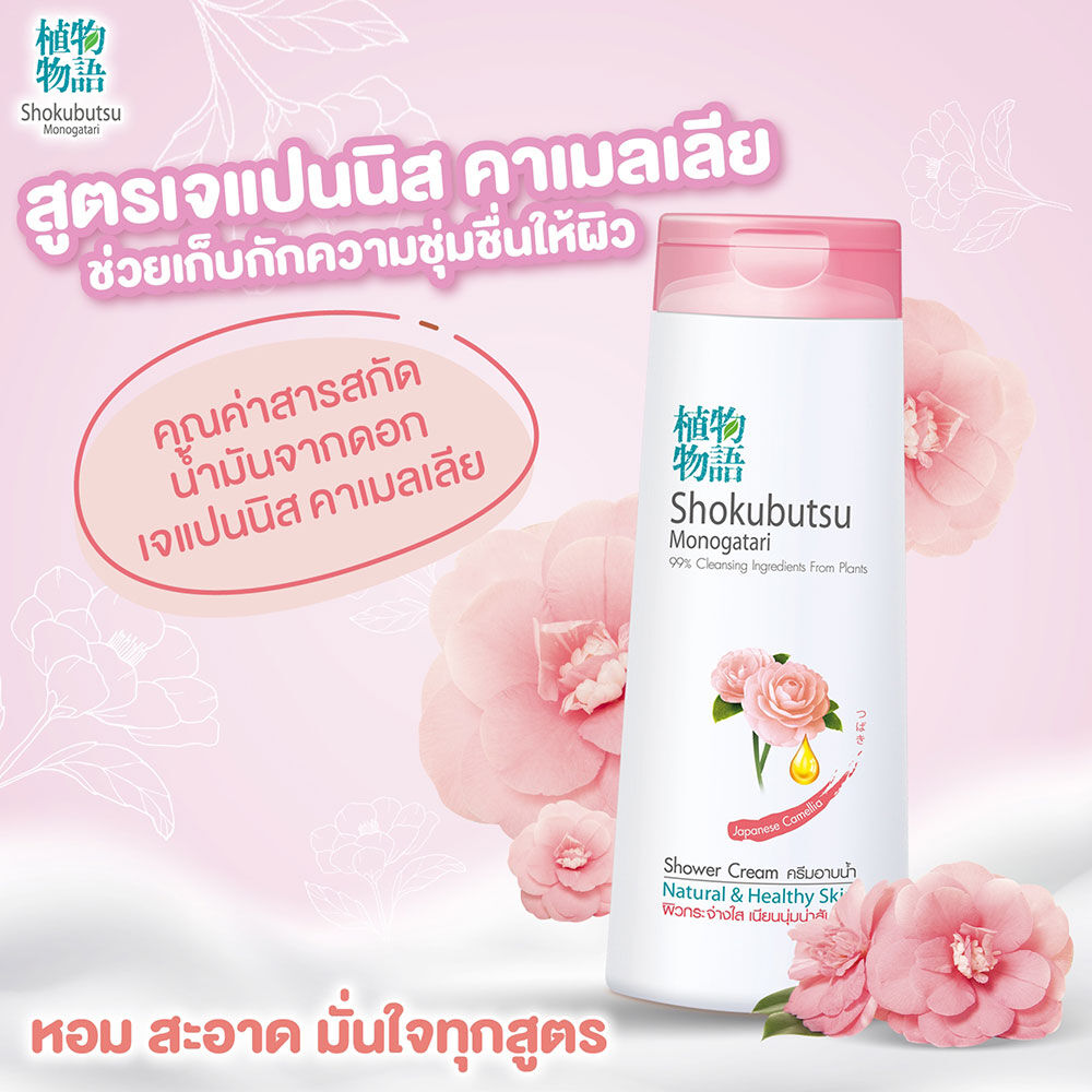 Shokubutsu Monogatari Shower Cream Japanese Camellia 500ml ครีมอาบน้ำสูตร Japanese Camellia ด้วยฟองครีมเนื้อละเอียด ล้างออกง่าย อุดมด้วยส่วนผสมจากพืชธรรมชาติ ช่วยทำความสะอาดผิวอย่างอ่อนโยน ผสานดอก Japanese Camellia ที่อุดมด้วยกรดโอเลอิก และมีมอยเจอร์ไรเซอร์จากธรรมชาติ ช่วยบำรุงให้ผิวเนียนนุ่ม ชุ่มชื้นมอบความเพลิดเพลินกับกลิ่นหอมละมุน เผยผิวสวยกระจ่างใส สุขภาพดี