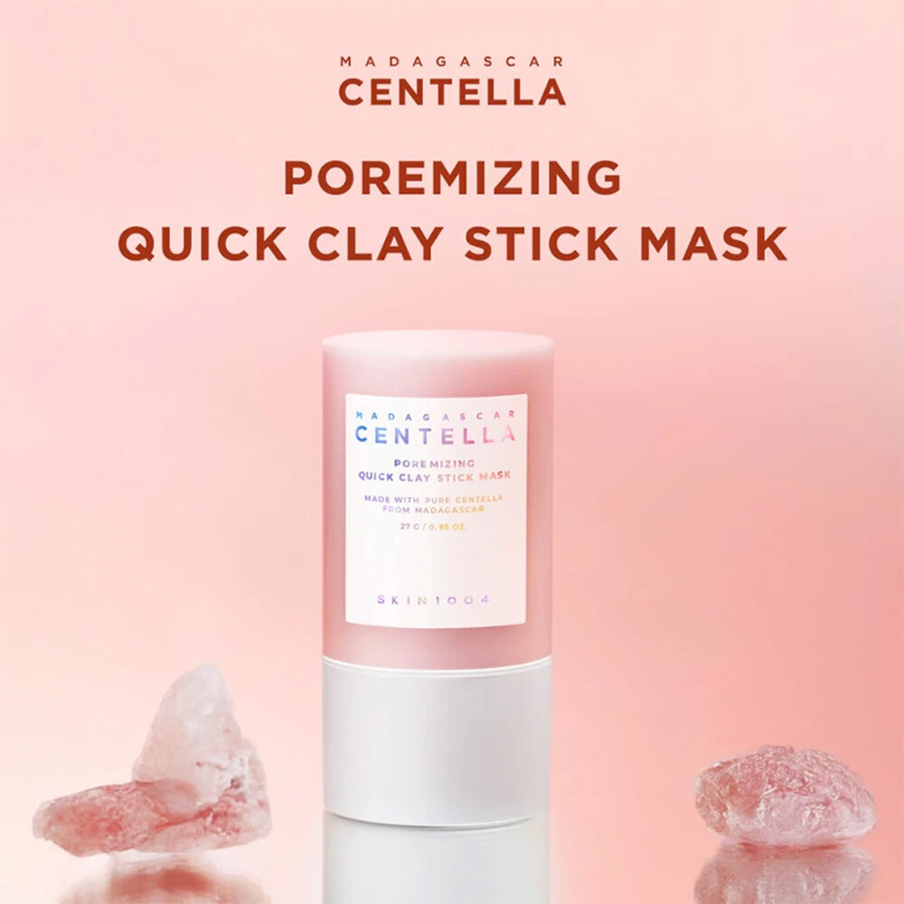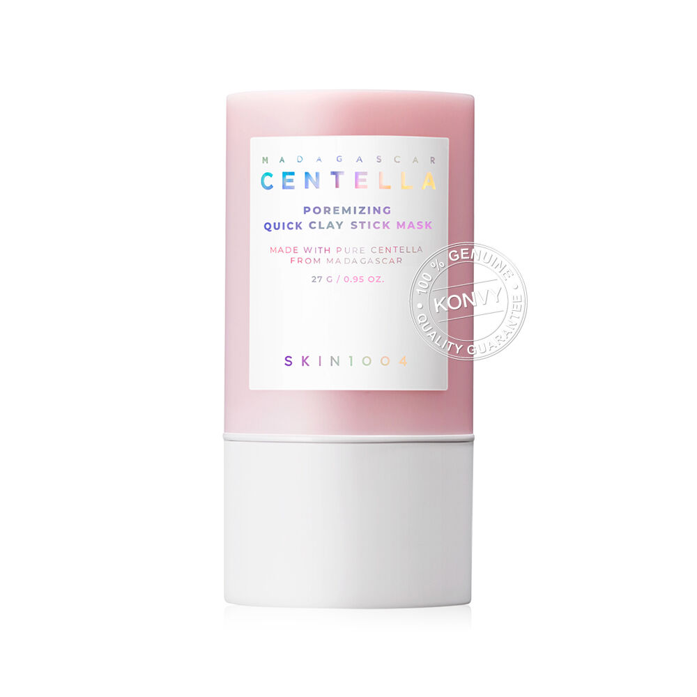 SKIN1004 Madagascar Centella Poremizing Quick Clay Stick Mask 27g มาสก์โคลนแบบแท่ง เนื้อเนียนละเอียด ที่มีส่วนผสมของดินเหนียว 5 ชนิด (Kaolin 18%) และผงถั่วแดงละเอียด ช่วยดูดซับสิ่งสกปรก ความมันส่วนเกิน และกระชับรูขุมขน พร้อมผสาน Centella Asiatica ช่วยปลอบประโลมผิวที่ระคายเคือง เผยผิวสะอาด เรียบเนียน สุขภาพดี