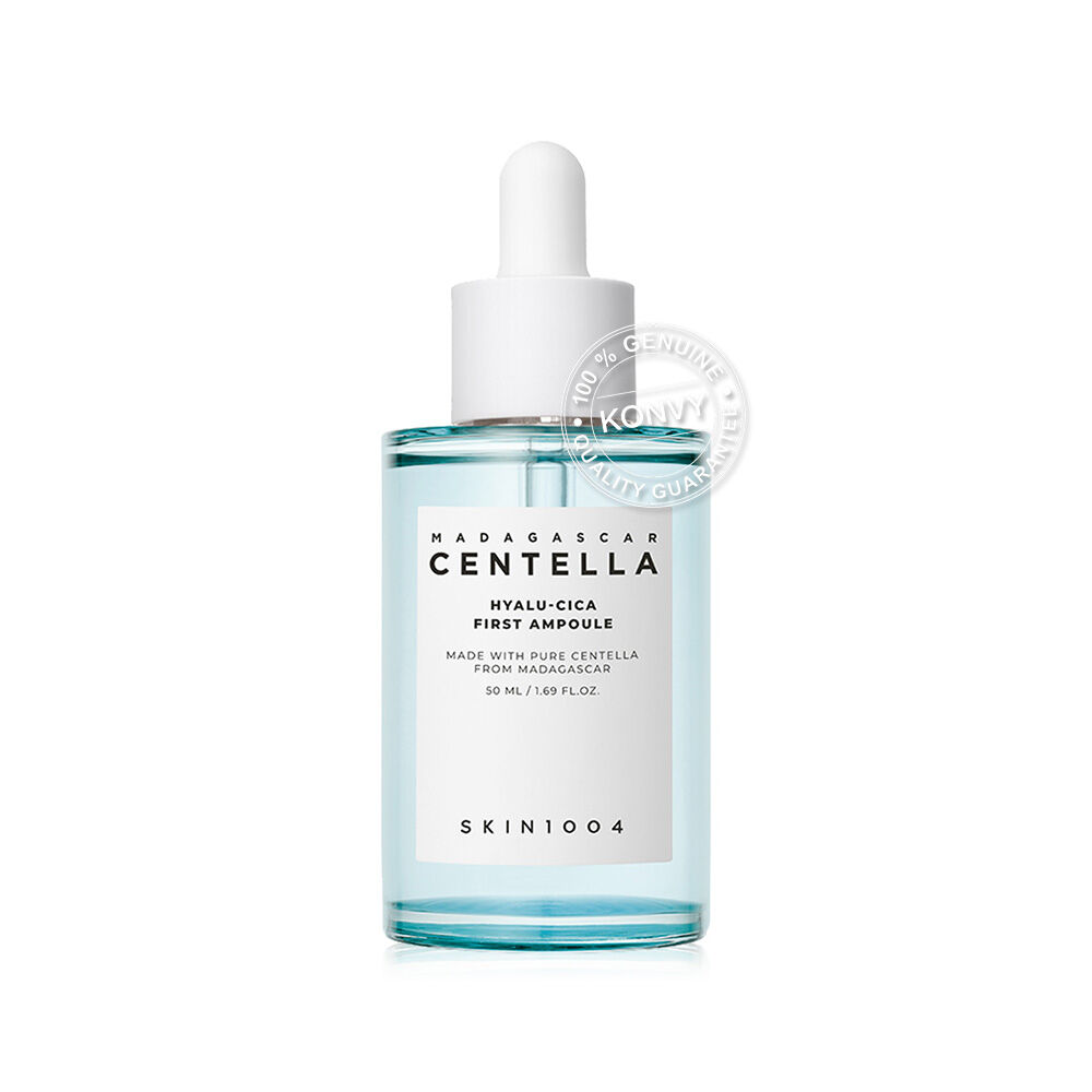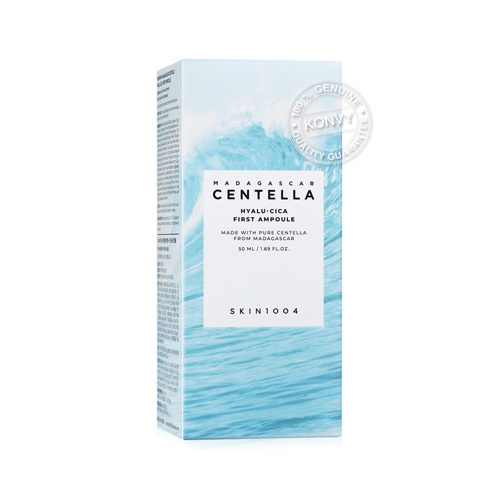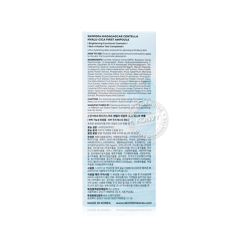 SKIN1004 Madagascar Centella Hyalu-Cica First Ampoule 50ml เฟิร์ส แอมพูล สูตรเพื่อผิวเนียนนุ่มชุ่มชื้นยาวนานตลอดวัน Skin Barrier กักเก็บน้ำและความชุมชื้นดีขึ้น ให้ผิวแลดูอ่อนเยาว์ ด้วยสูตรไฮยาลู-ซิก้า ที่ผสานคุณค่าของ Centella Asiatica สารสกัดบริสุทธิ์จากมาดากัสการ์และ Hyaluronic 3 ชนิด ในอัตราส่วนที่เหมาะสมที่สุดเพื่อผิวชุ่มชื้นและให้ความรู้สึกผ่อนคลาย มาพร้อม COMPARAX ส่วนผสมของสารสกัดที่ช่วยลดโอกาสผิวระคายเคือง Gardenia Extract ออยล์สกัดเนื้อสีฟ้าธรรมชาติพร้อมให้กลิ่นที่หอมผ่อนคลาย เนื้อบางเบา ซึมเร็ว ไม่เหนียวเหนอะหนะ